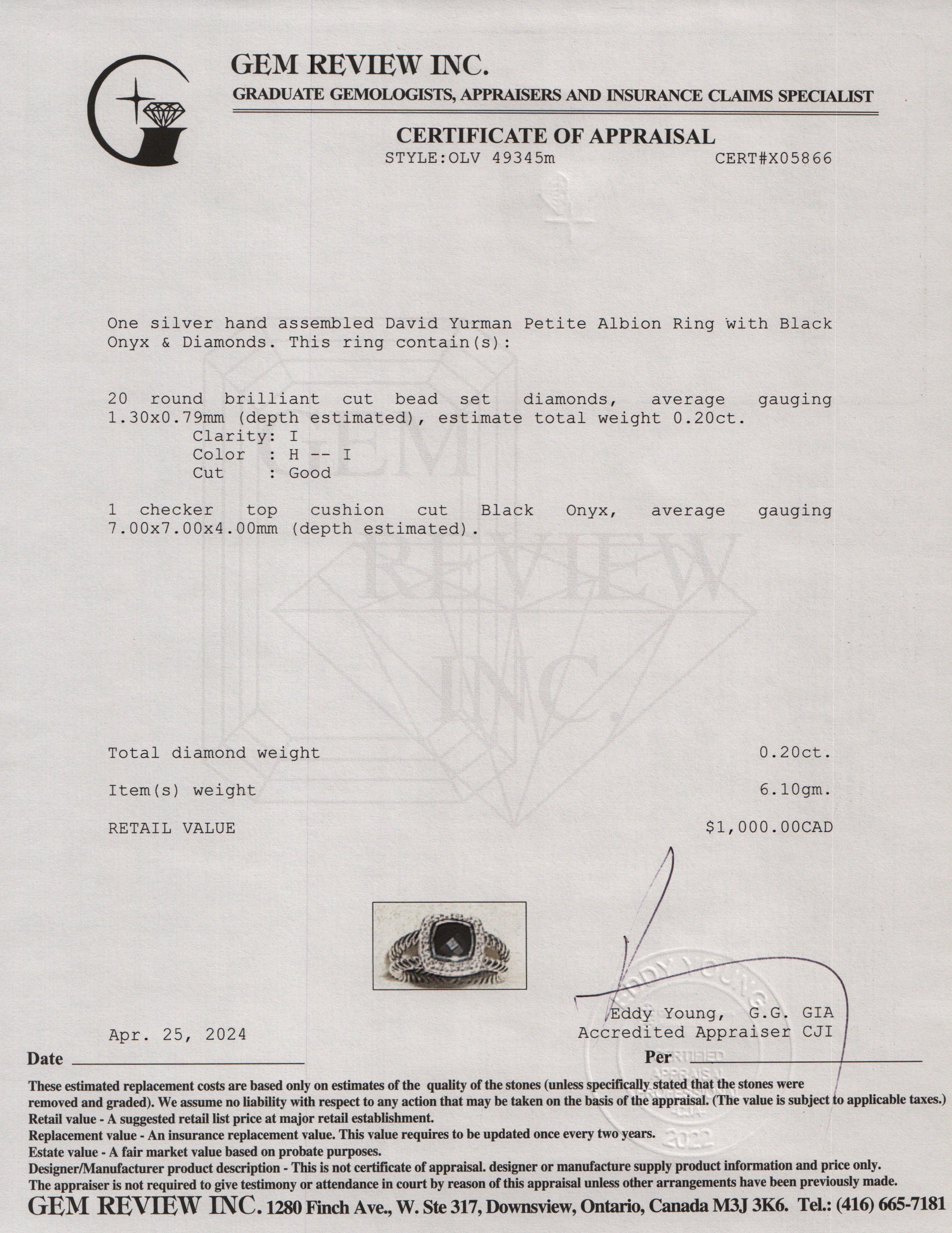 Sterling Silver Petite Albion Ring with Black Onyx & Diamonds, Size 6