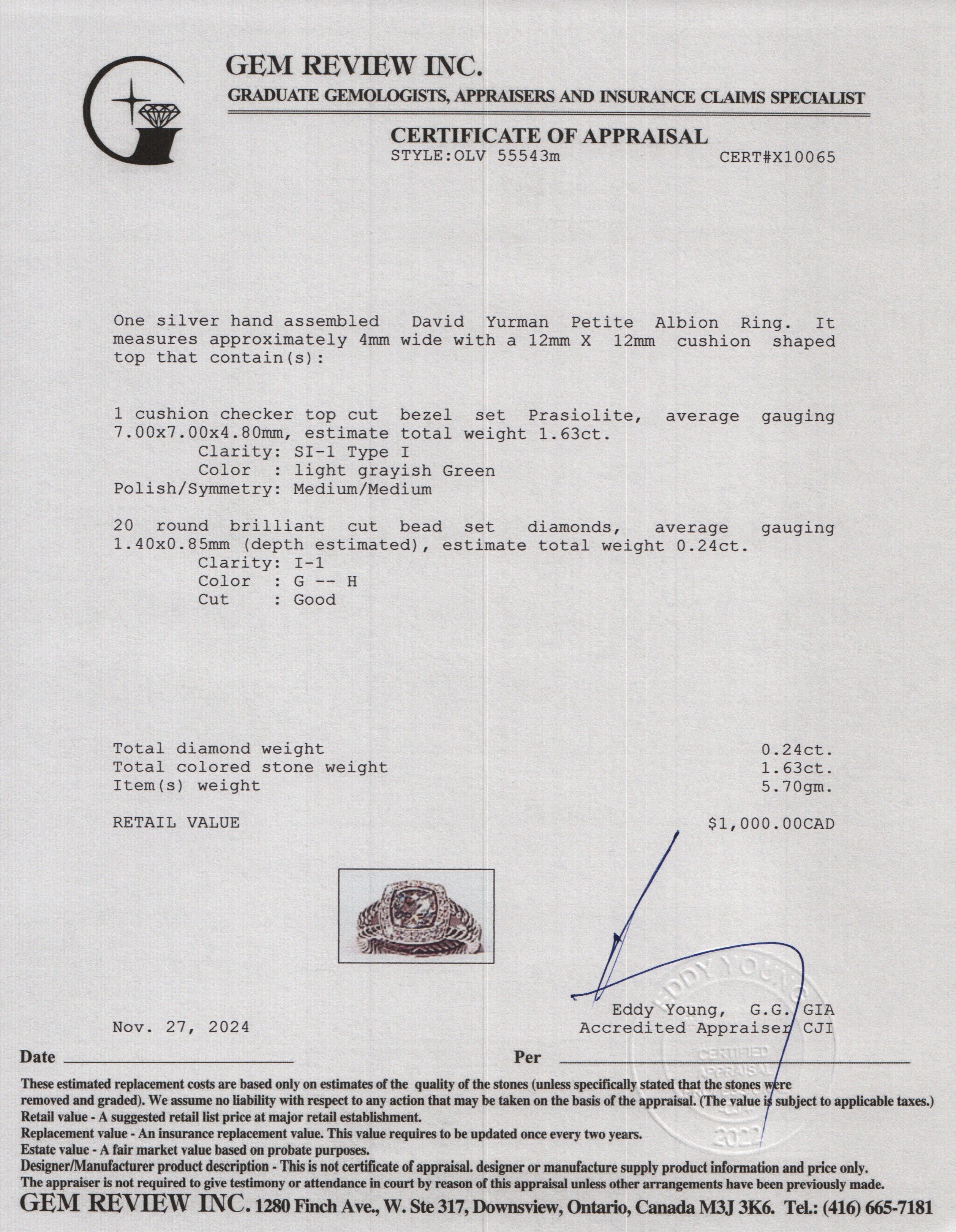 Sterling Silver Petite Albion Ring with Prasiolite & Diamonds, Size 5