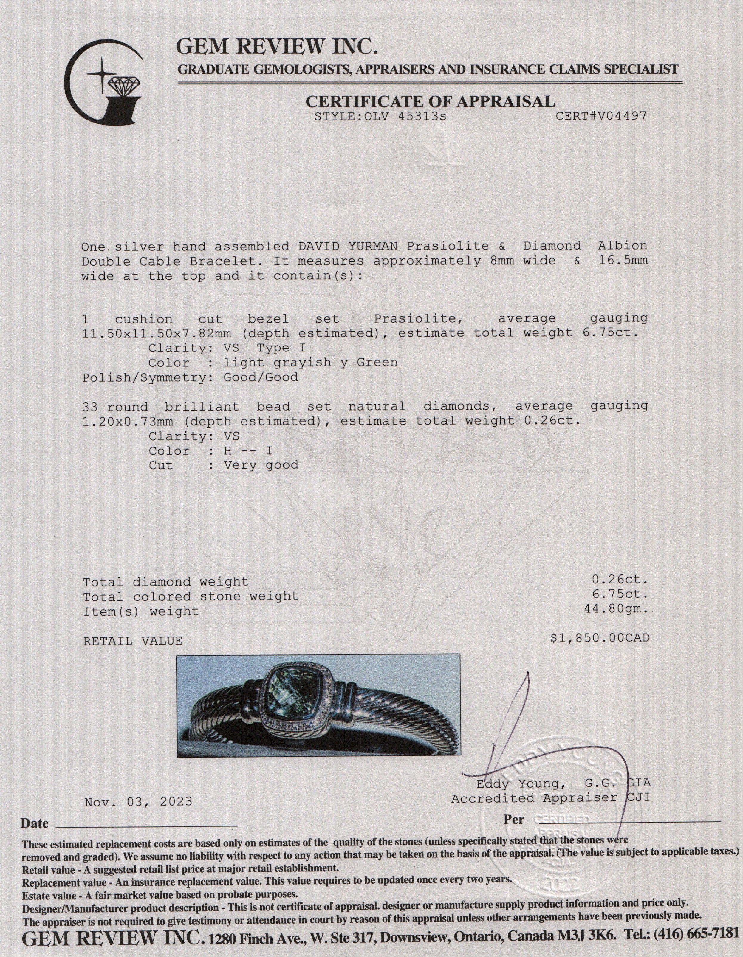 Sterling Silver Prasiolite & Diamond Albion Double Cable Bracelet