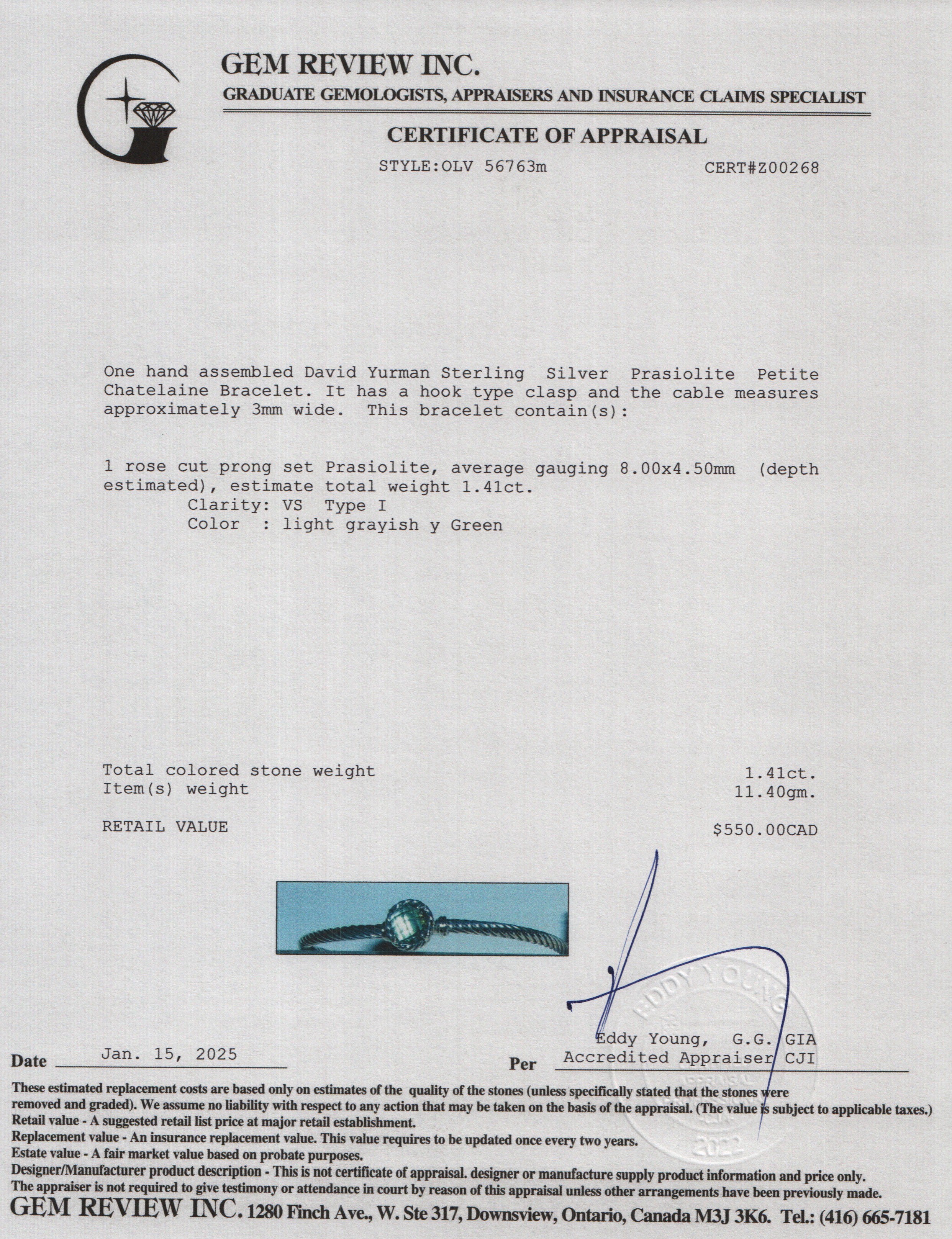 Sterling Silver Prasiolite Petite Chatelaine Bracelet, 3MM