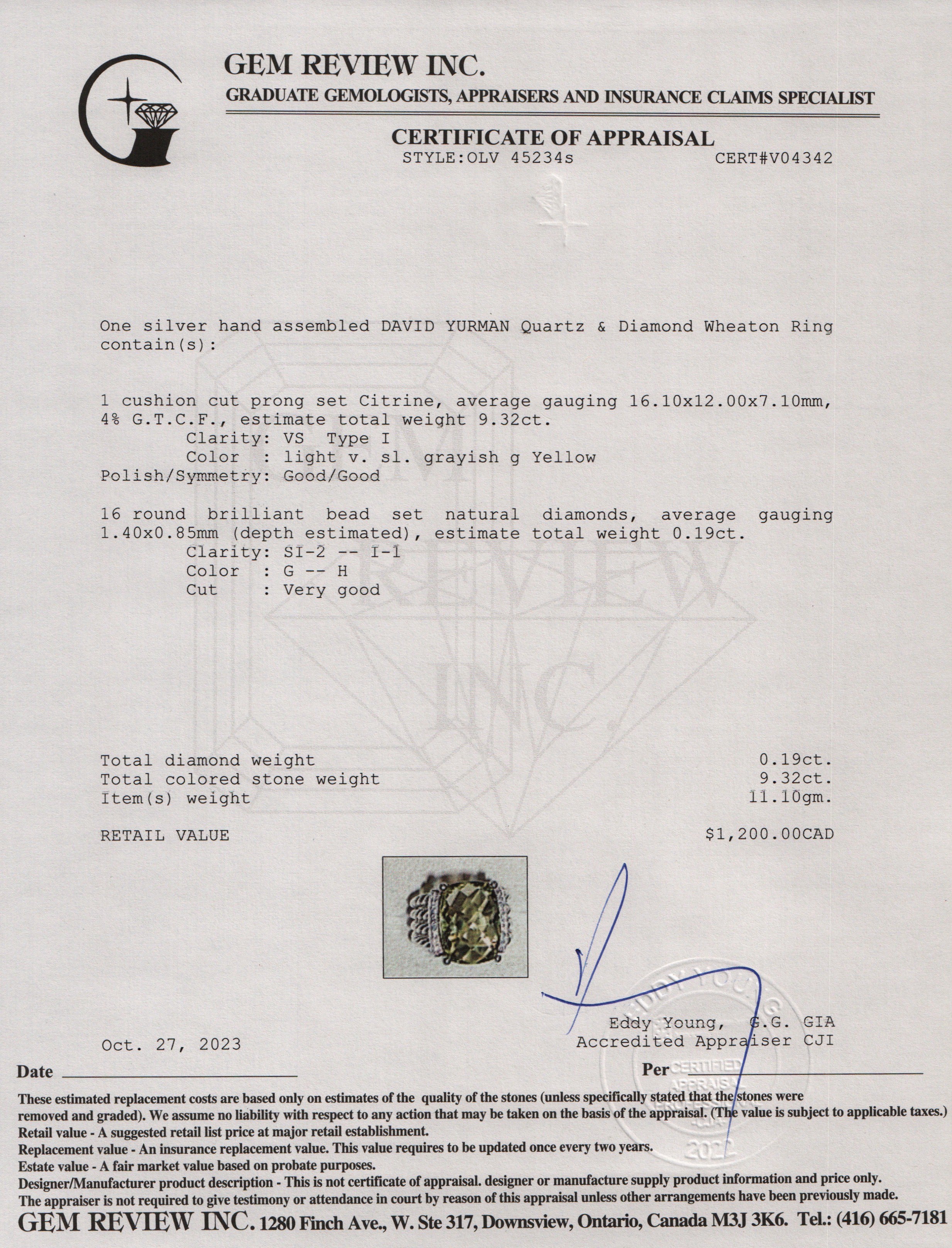 Sterling Silver Quartz & Diamond Wheaton Ring, Size 7
