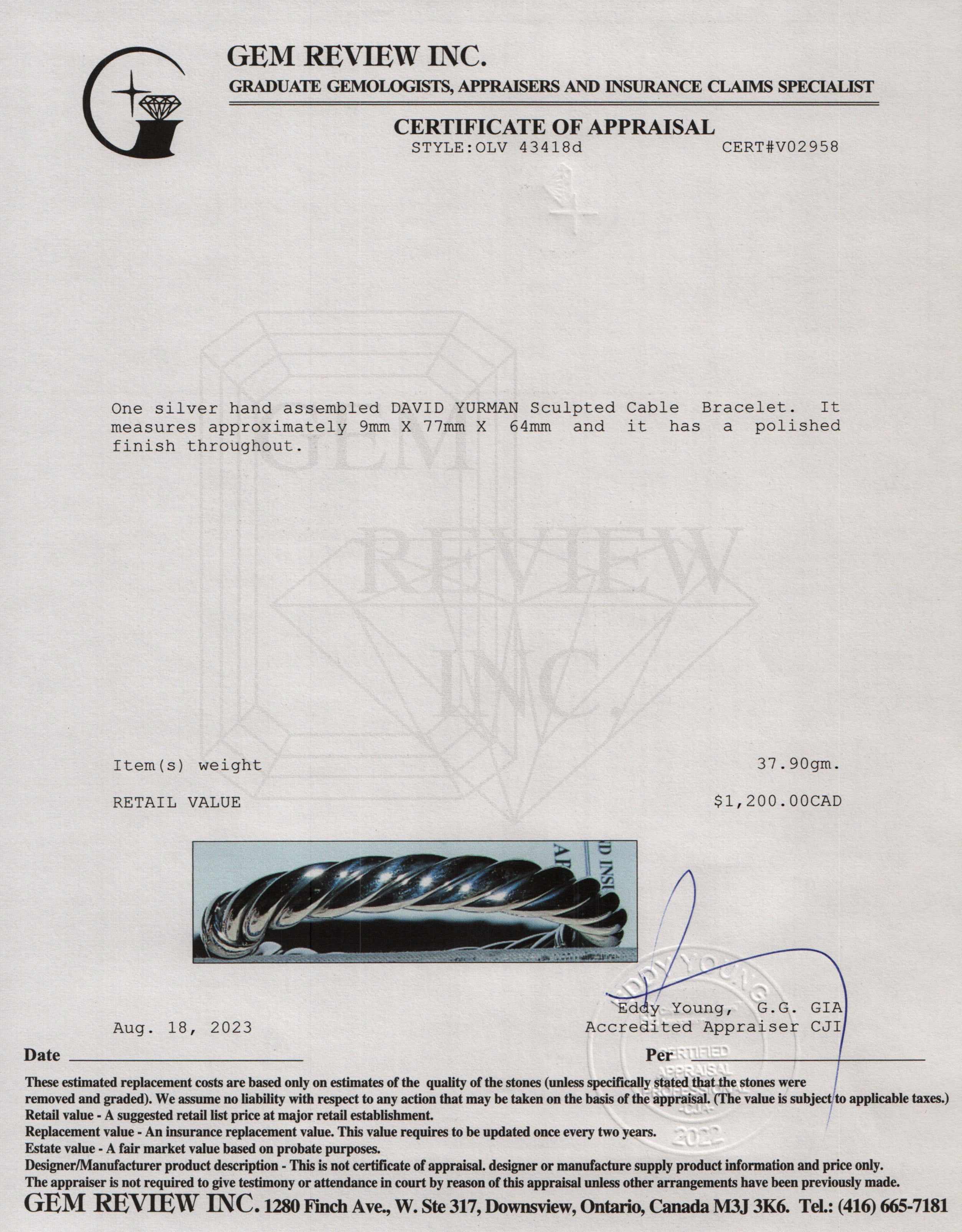Sterling Silver Sculpted Cable Bracelet, 9 MM