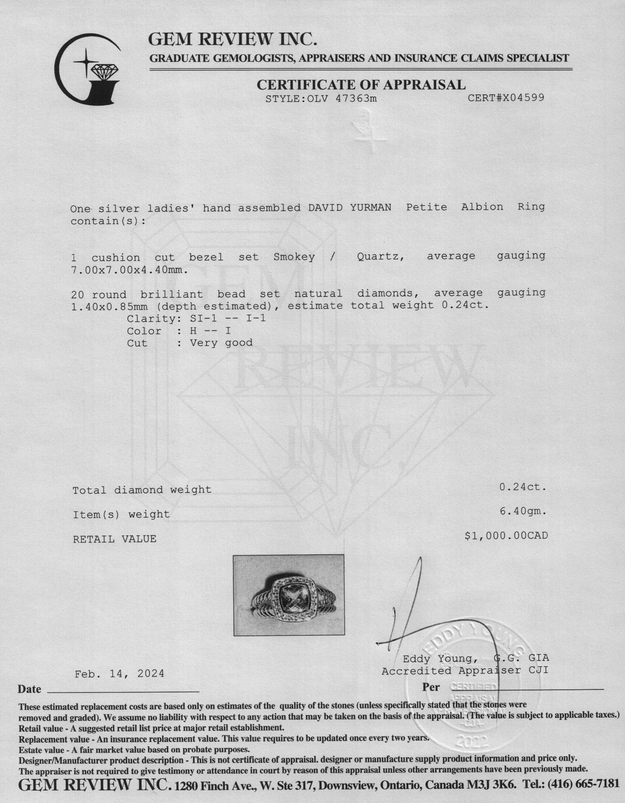 Sterling Silver Smoky Quartz & Diamond Petite Albion Ring, Size 6.25