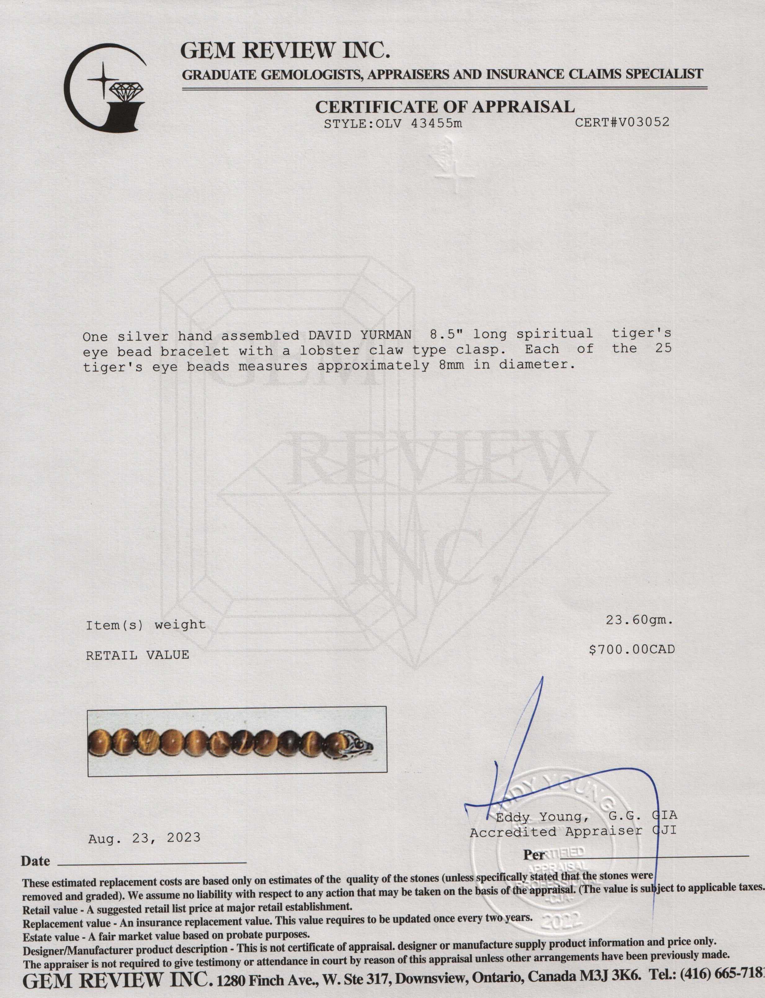 Sterling Silver Spiritual 8 MM Beads Bracelet with Tiger's Eye
