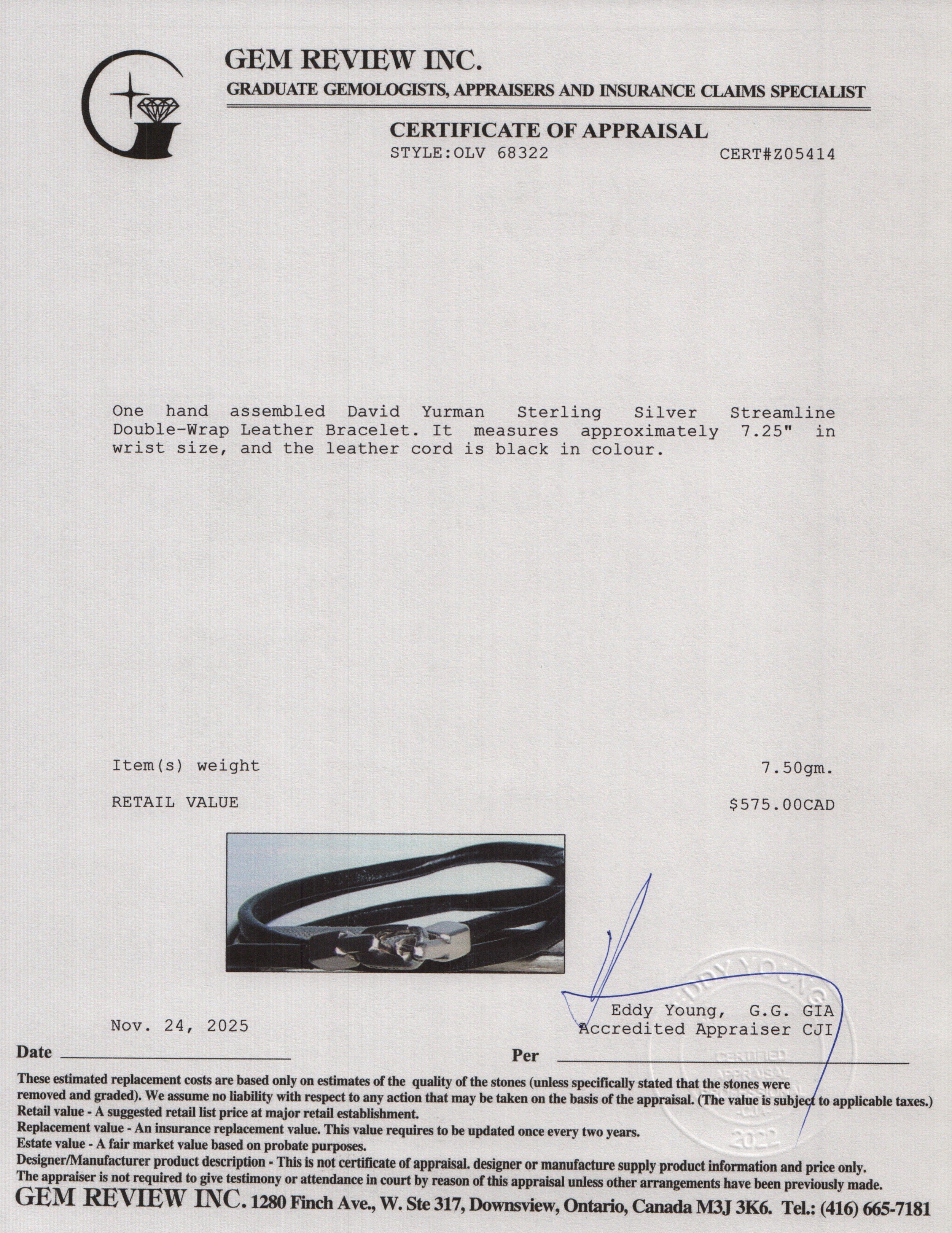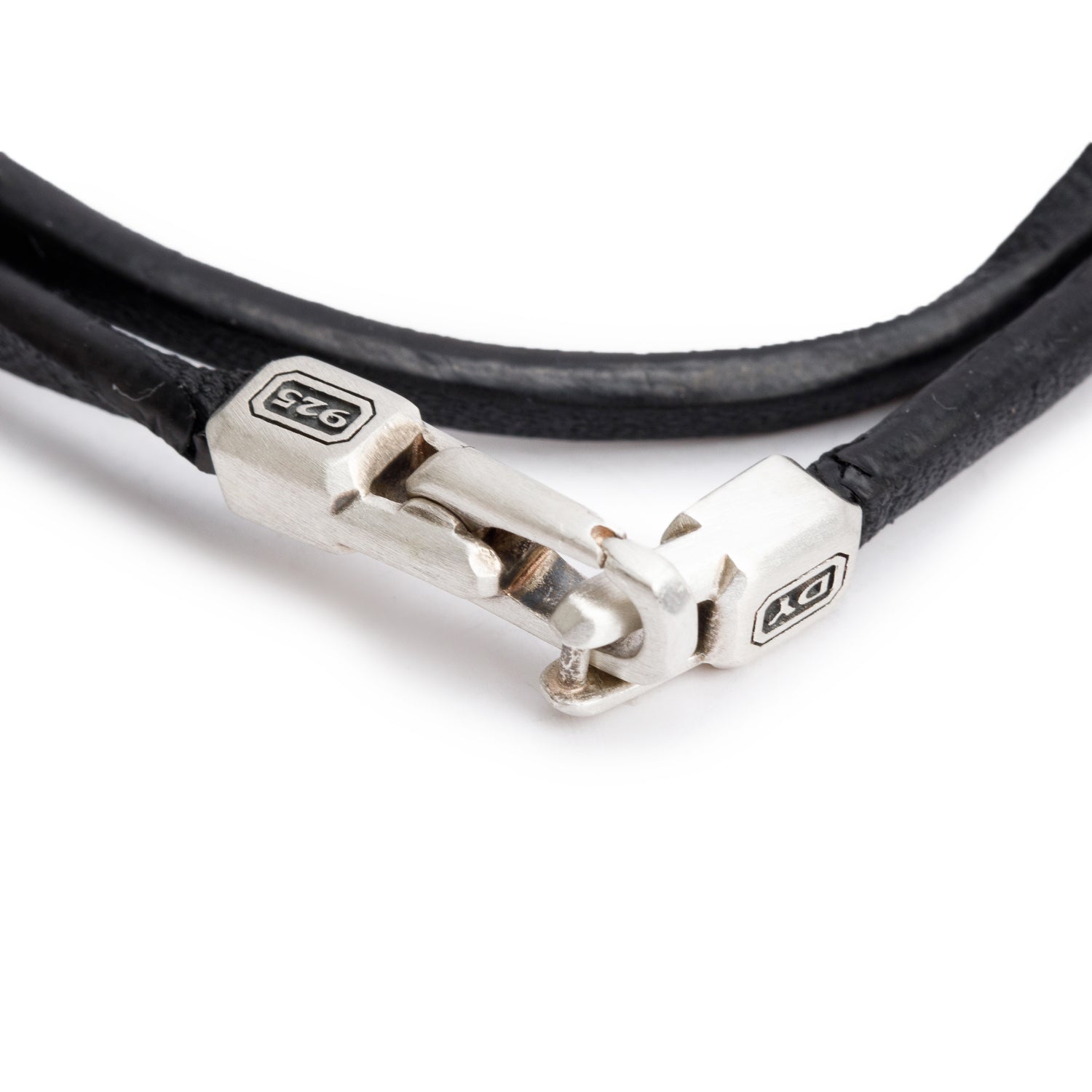 Sterling Silver Streamline Double-Wrap Leather Bracelet