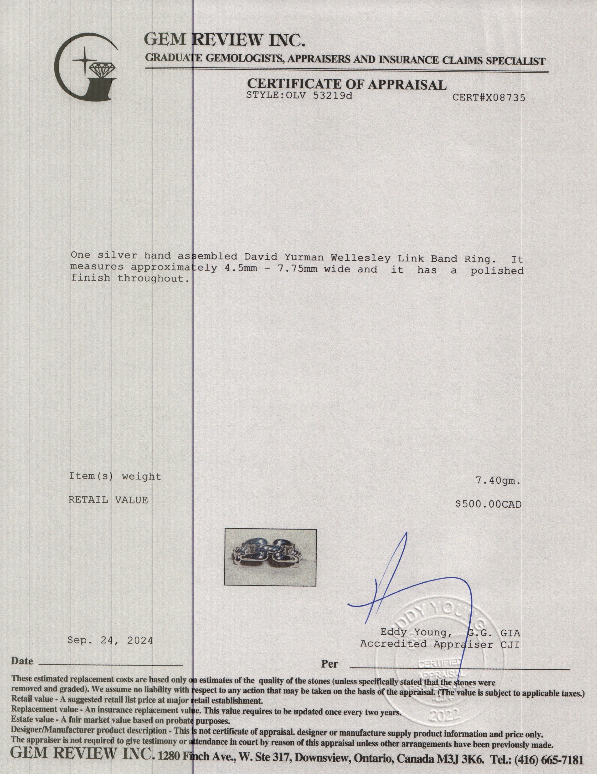 Sterling Silver Wellesley Link Band Ring, Size 7 w/ Box