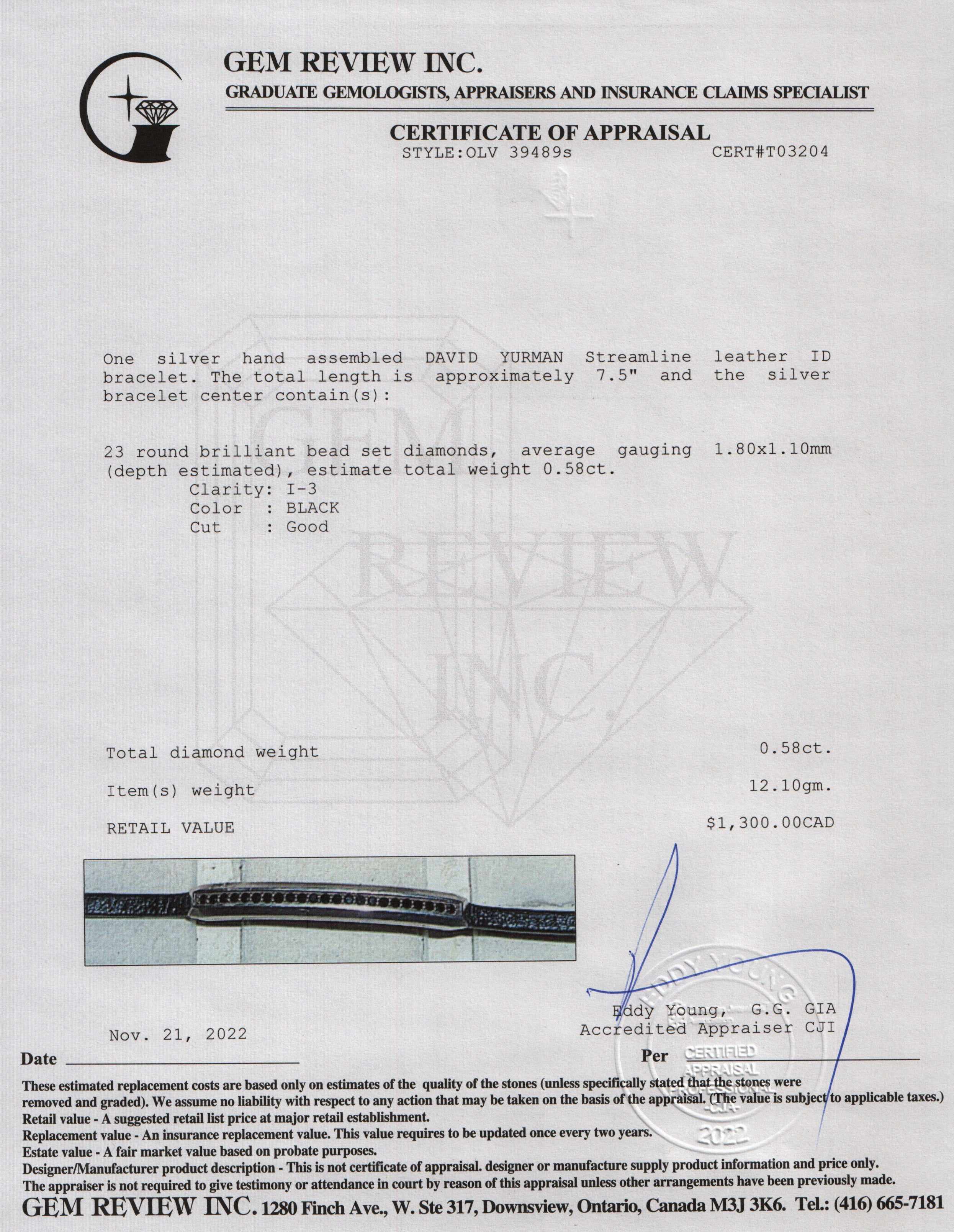 David Yurman Streamline Leather ID Bracelet with Black Diamonds