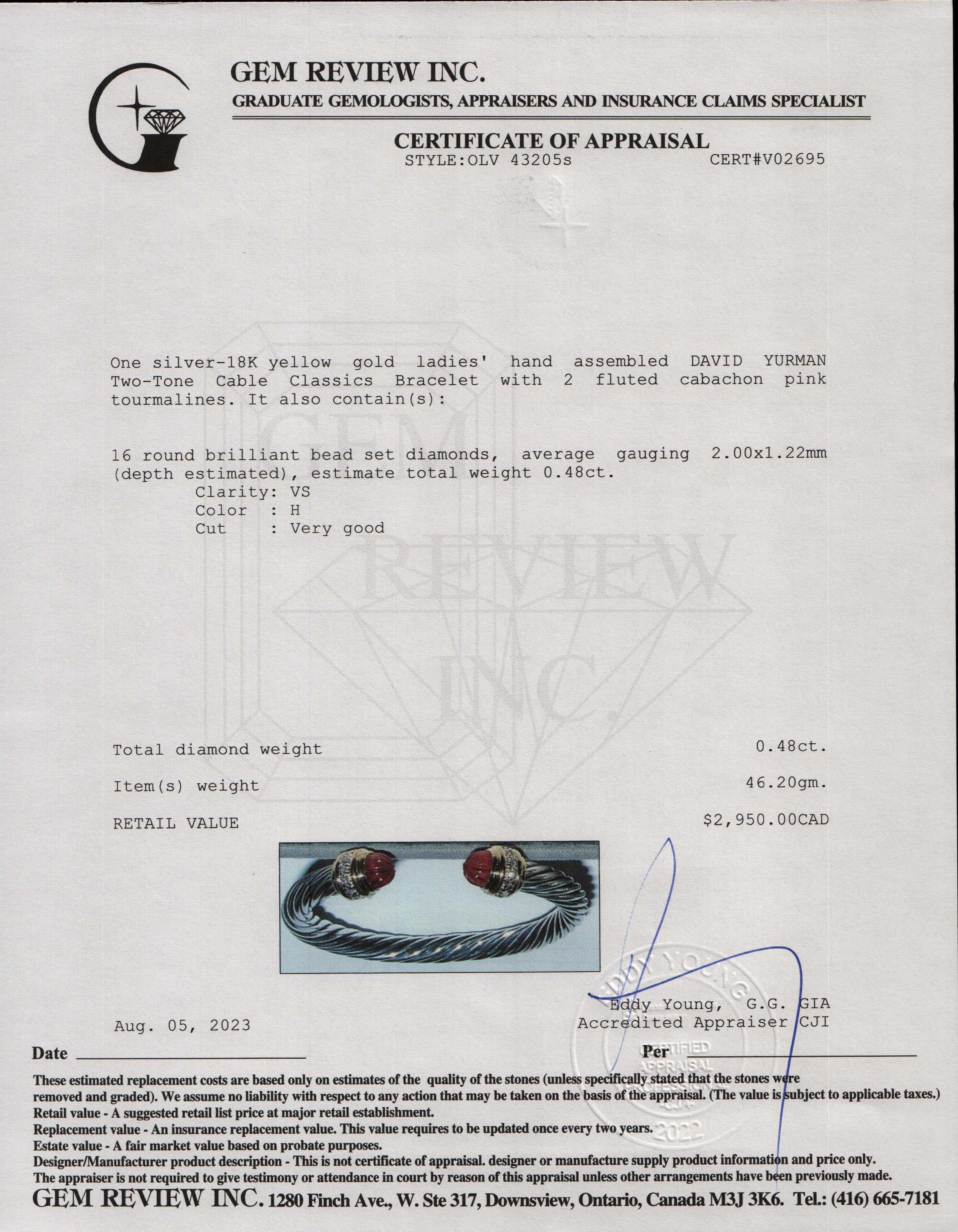 David Yurman Two-Tone 7 MM Cable Classics Bracelet with Pink Tourmaline & Diamonds