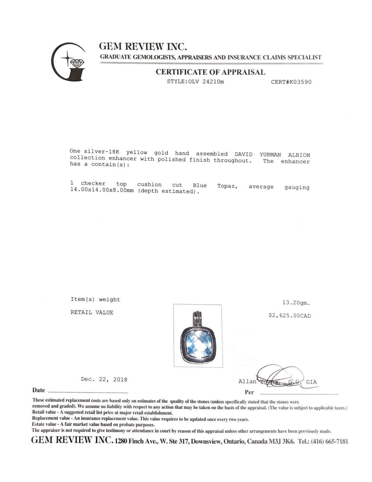 David Yurman Two-Tone Blue Topaz Albion Pendant