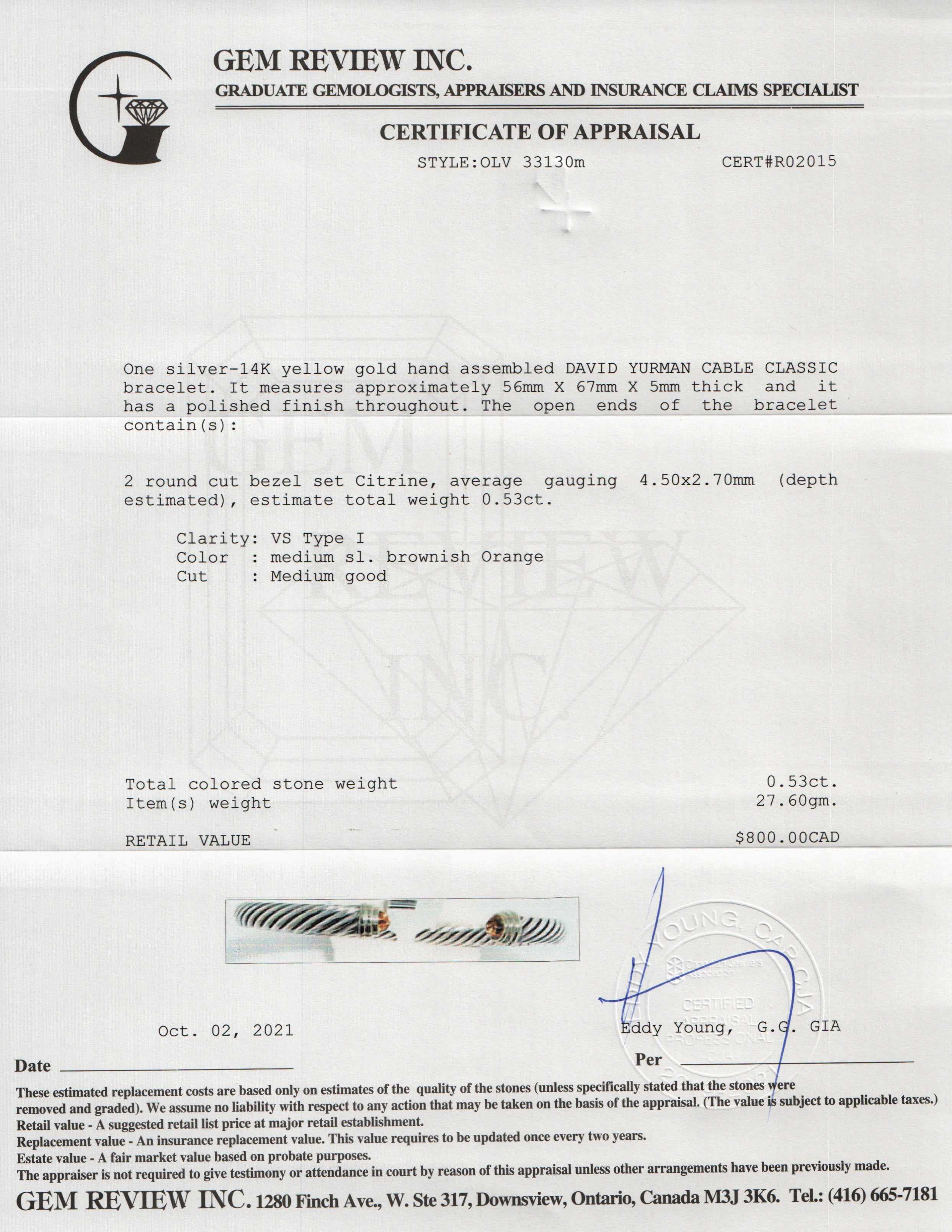 David Yurman Two-Tone Cable Classics Bracelet with Citrine