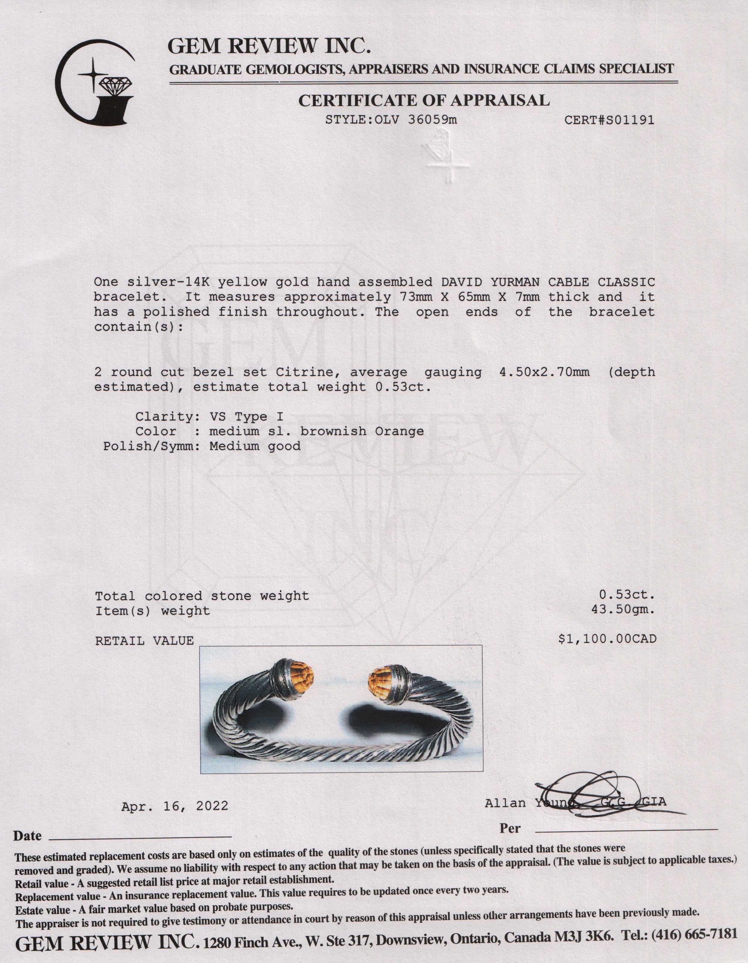 David Yurman Two-Tone Cable Classics Bracelet with Citrine
