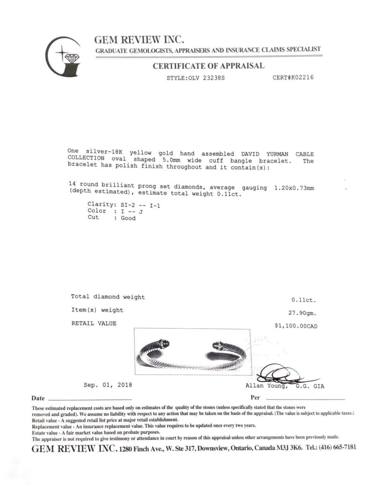 David Yurman Two-Tone Cable Classics Bracelet with Diamonds