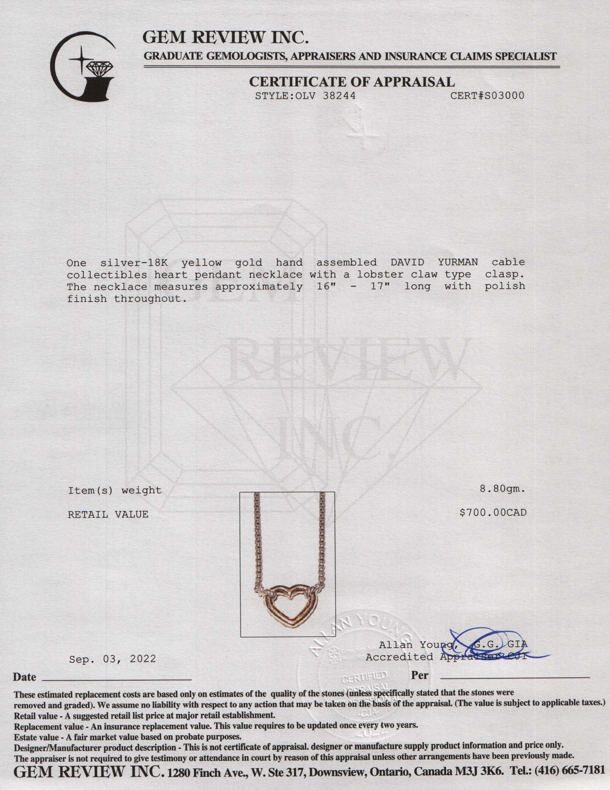 David Yurman Two-Tone Cable Collectibles Heart Station Necklace