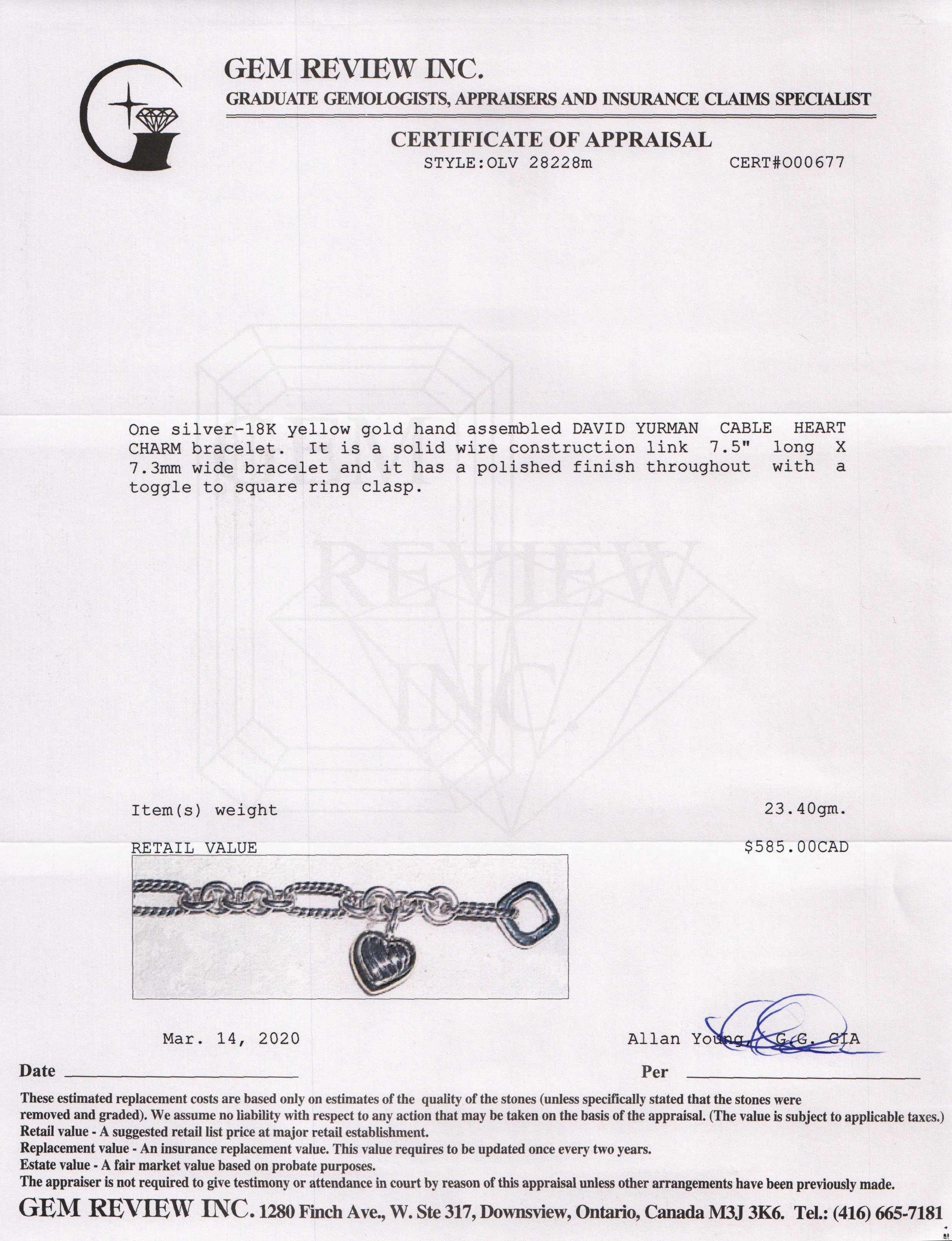 David Yurman Two-Tone Cable Heart Charm Bracelet