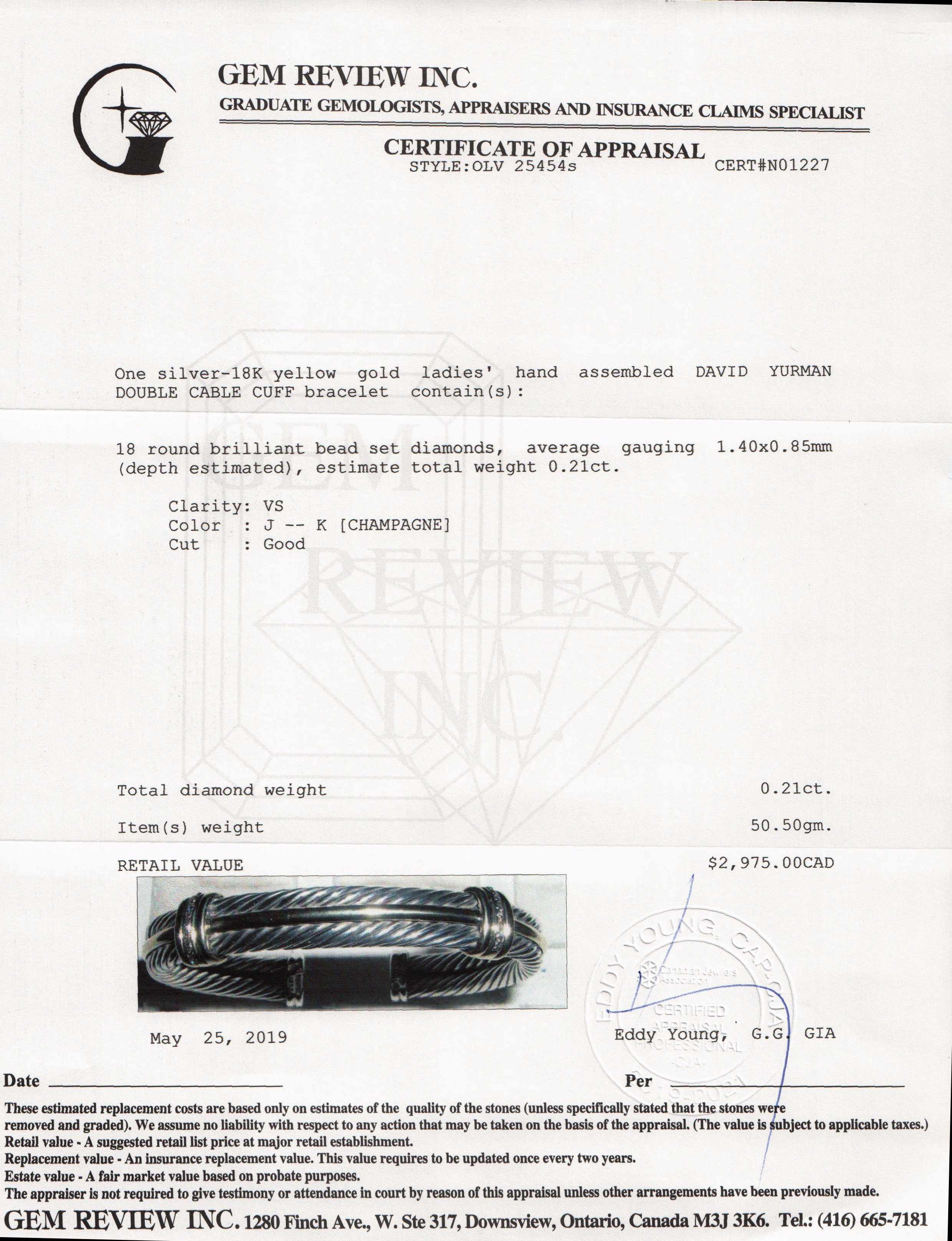 David Yurman Two-Tone Double Cable Cuff Bracelet with Diamonds