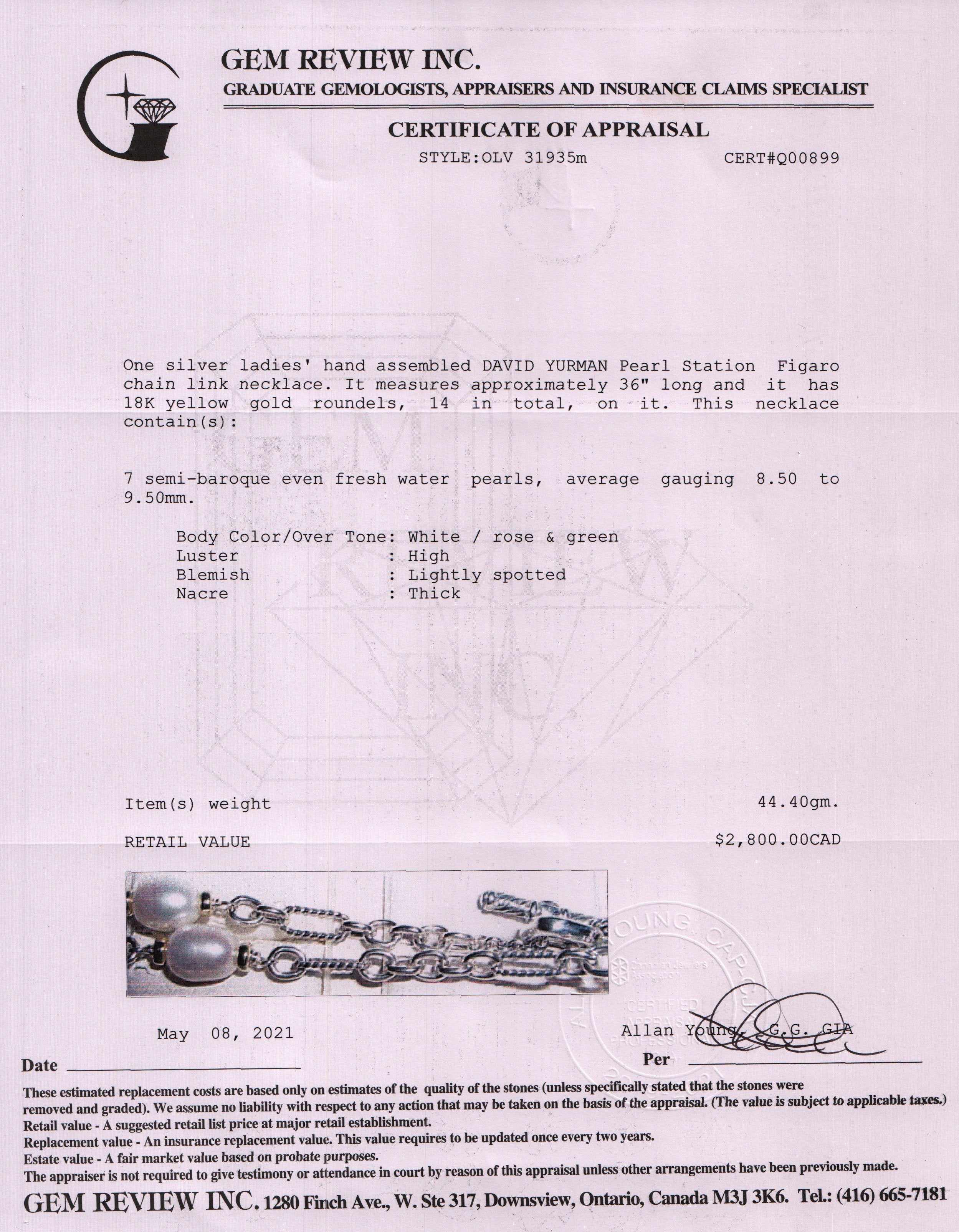 David Yurman Two-Tone Figaro Pearl Station Necklace