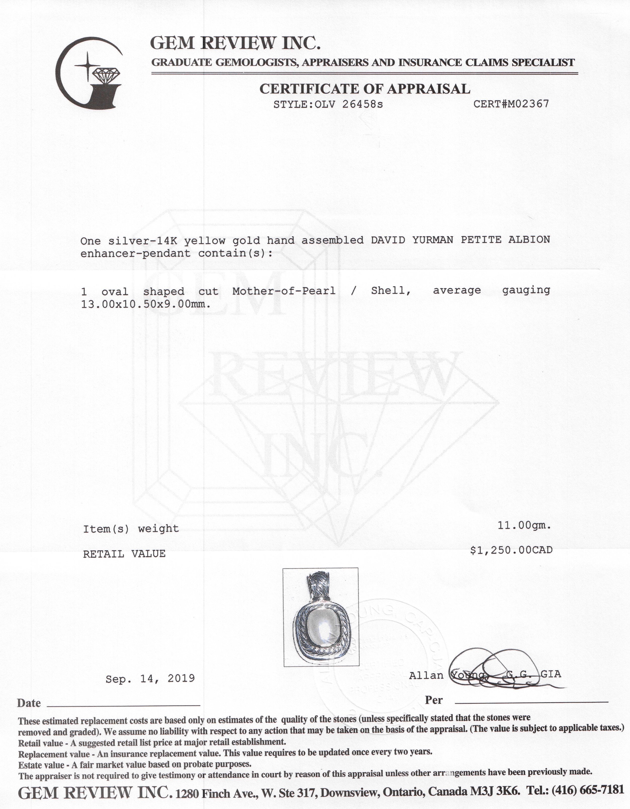 David Yurman Two-Tone Mabe Pearl Albion Enhancer Pendant