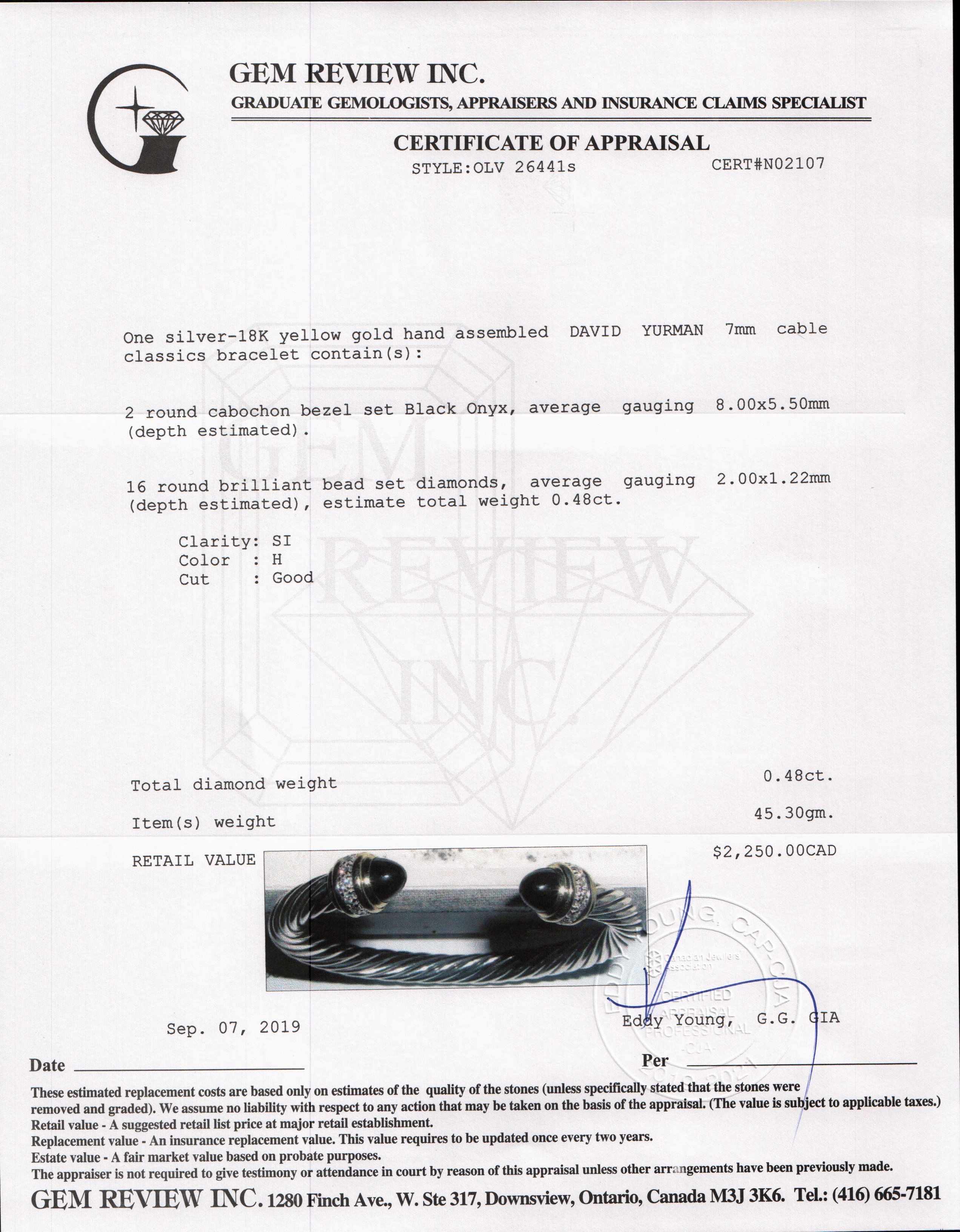 David Yurman Two-Tone Onyx & Diamond Cable Classics Bracelet