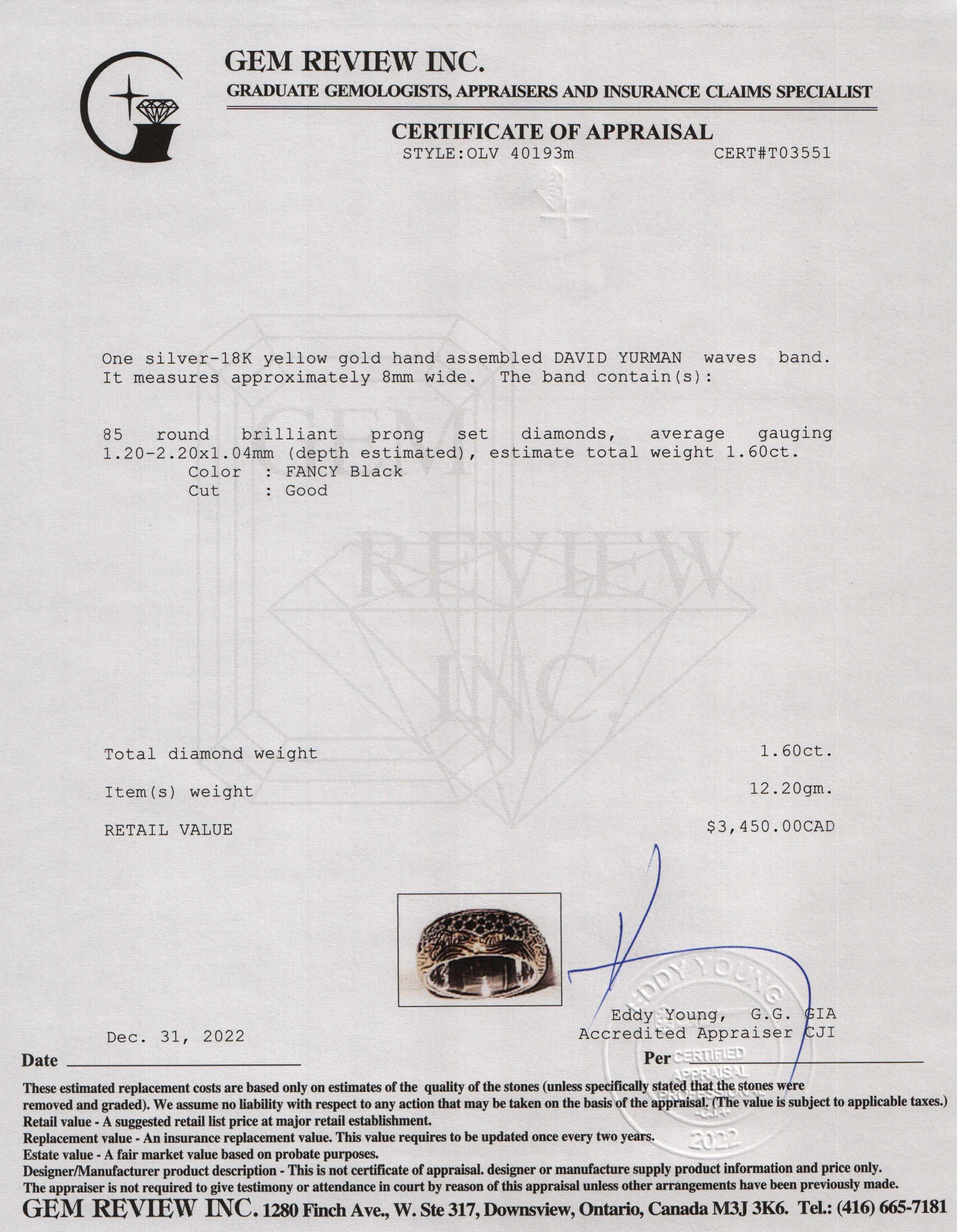 David Yurman Two-Tone Pave Black Diamond Waves Band Ring