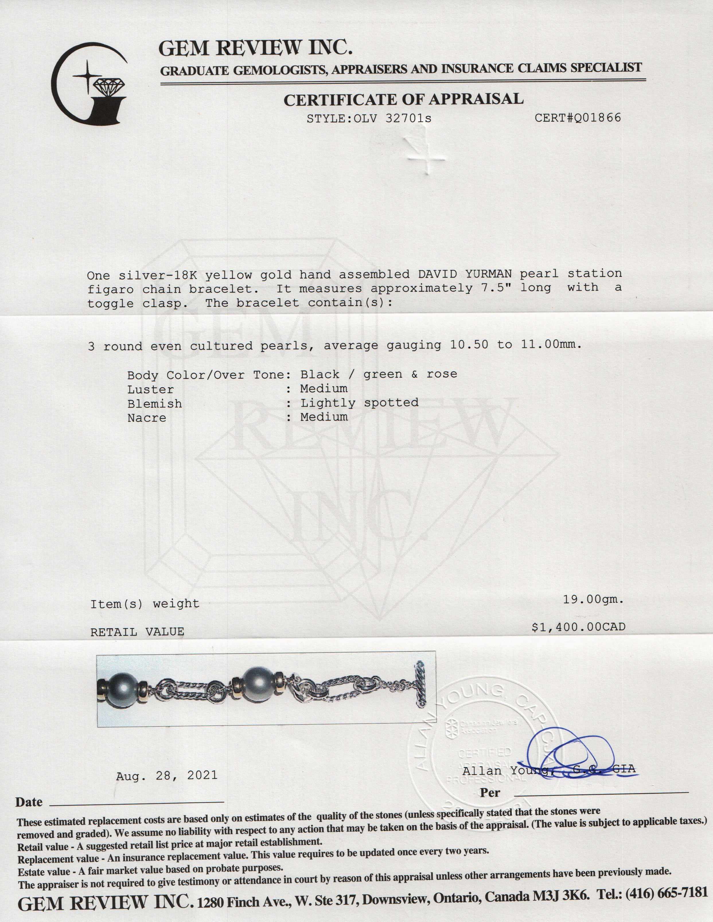 David Yurman Two-Tone Pearl Figaro Chain Bracelet