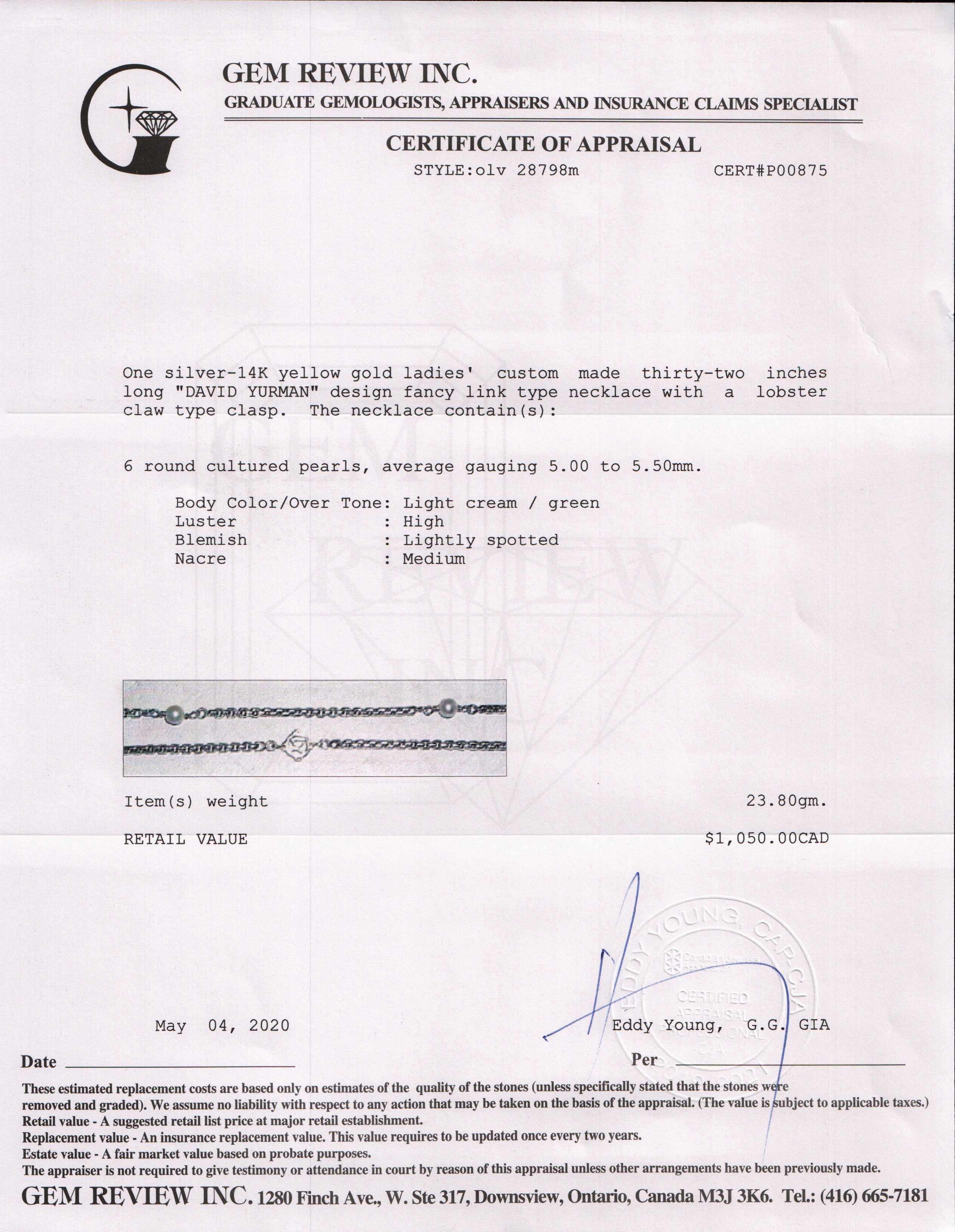 David Yurman Two-Tone Pearl Logo Station Necklace