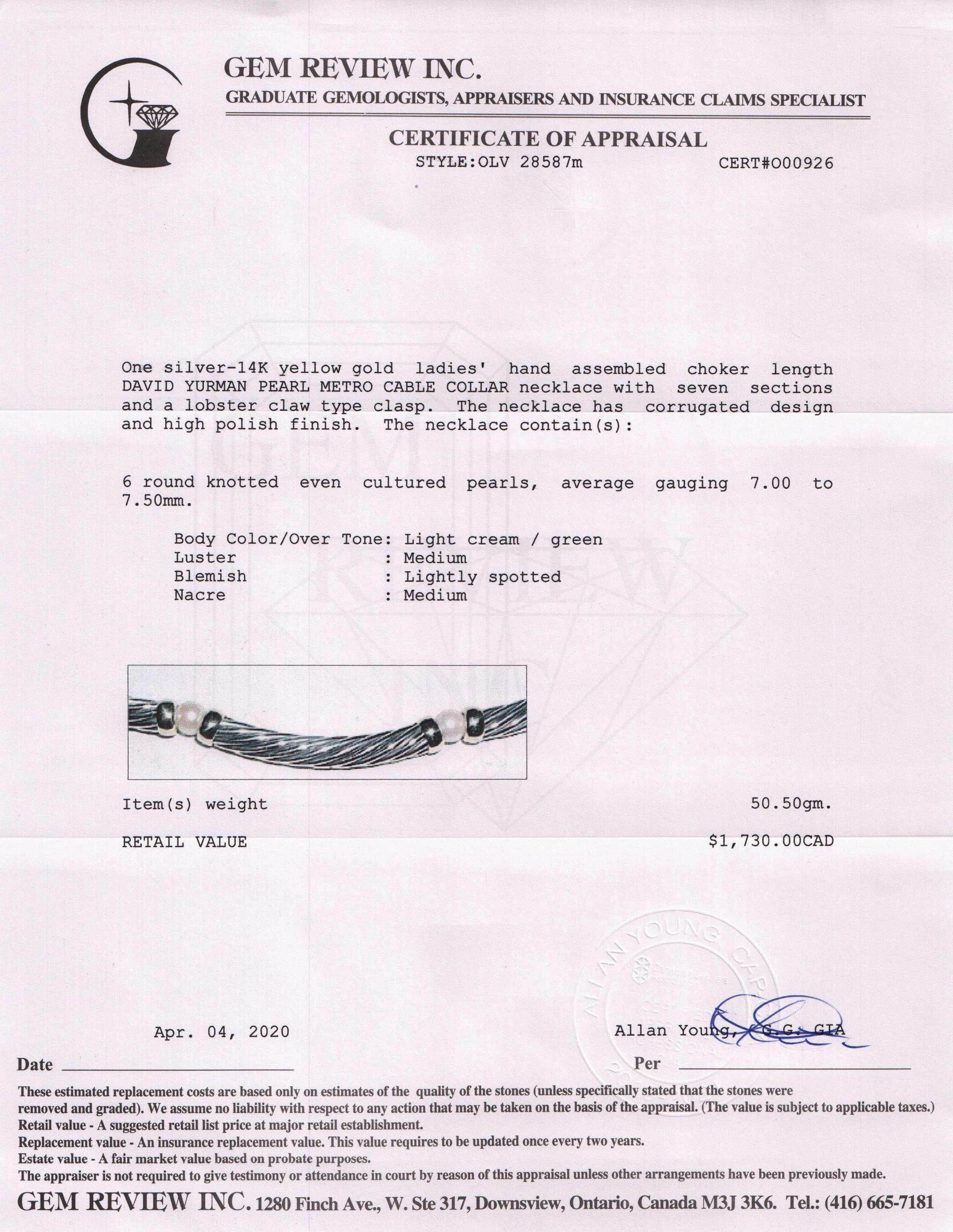 David Yurman Two-Tone Pearl Metro Cable Collar Necklace