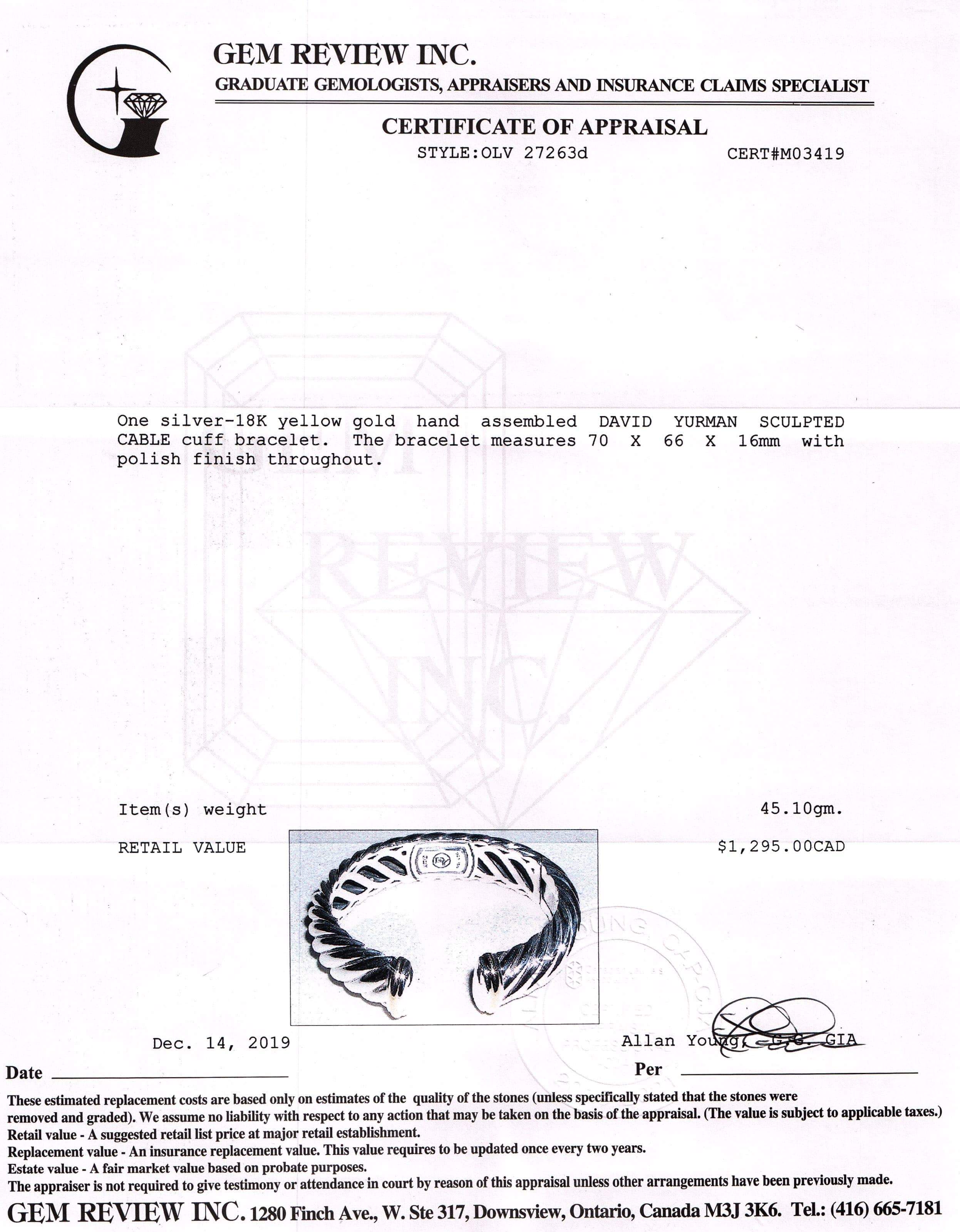 David Yurman Two-Tone Sculpted Cable Cuff Bracelet