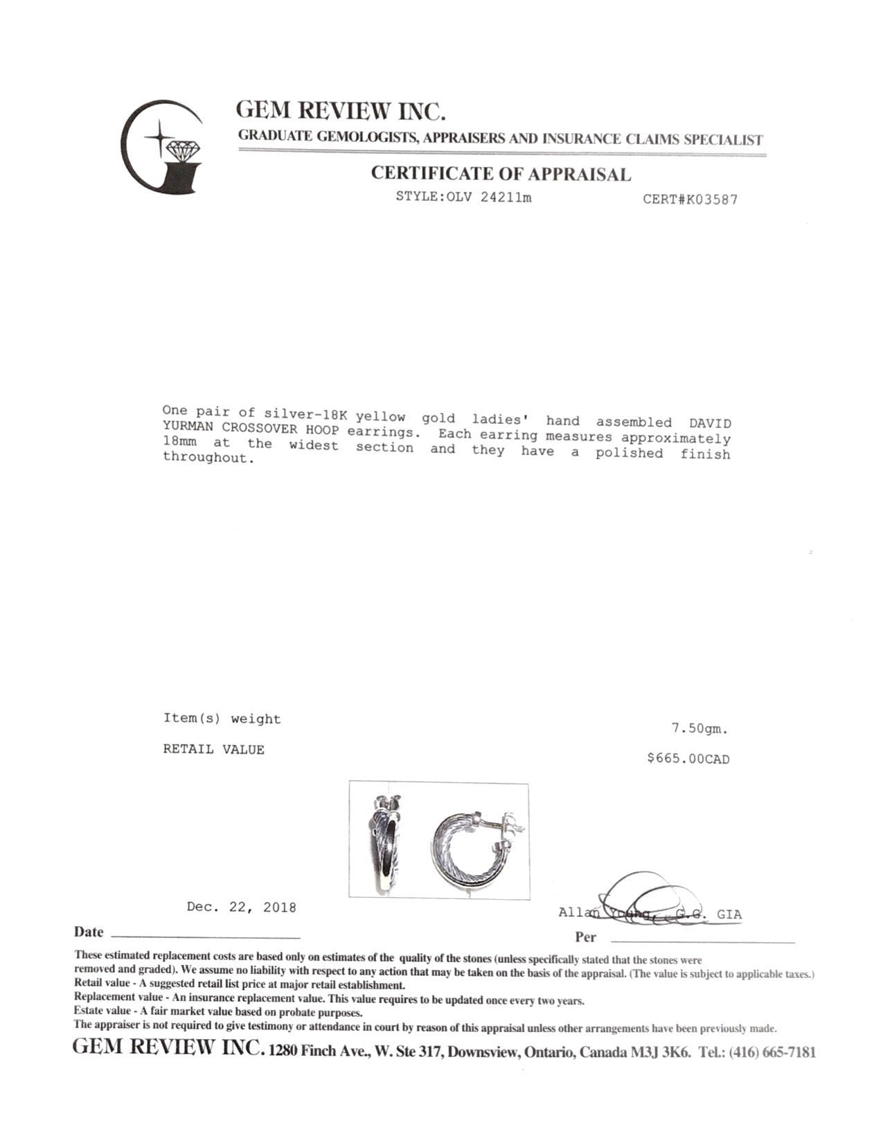 David Yurman Two-Tone Small Crossover Hoop Earrings