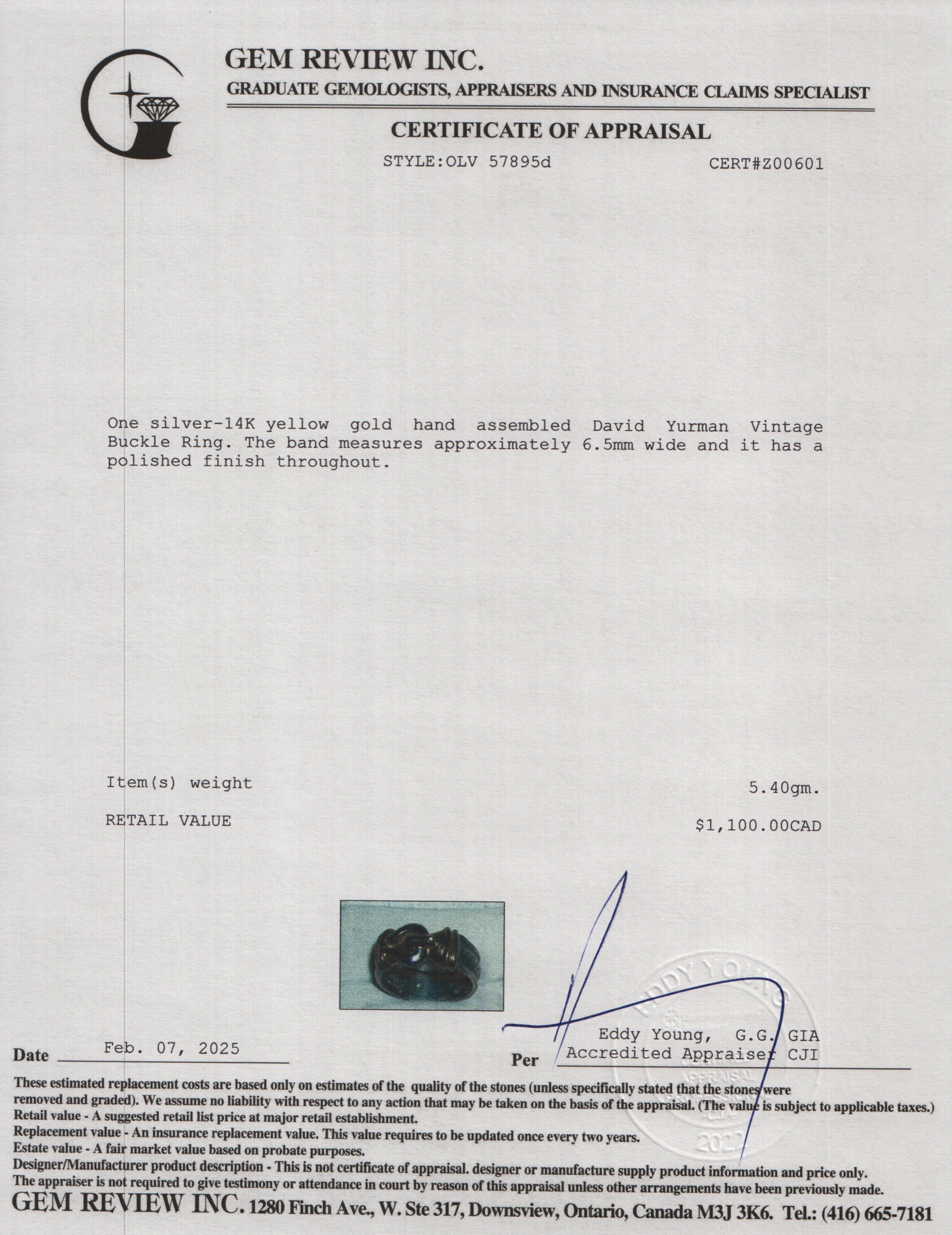 Vintage Sterling Silver & 14k Yellow Gold Buckle Ring, Size 6