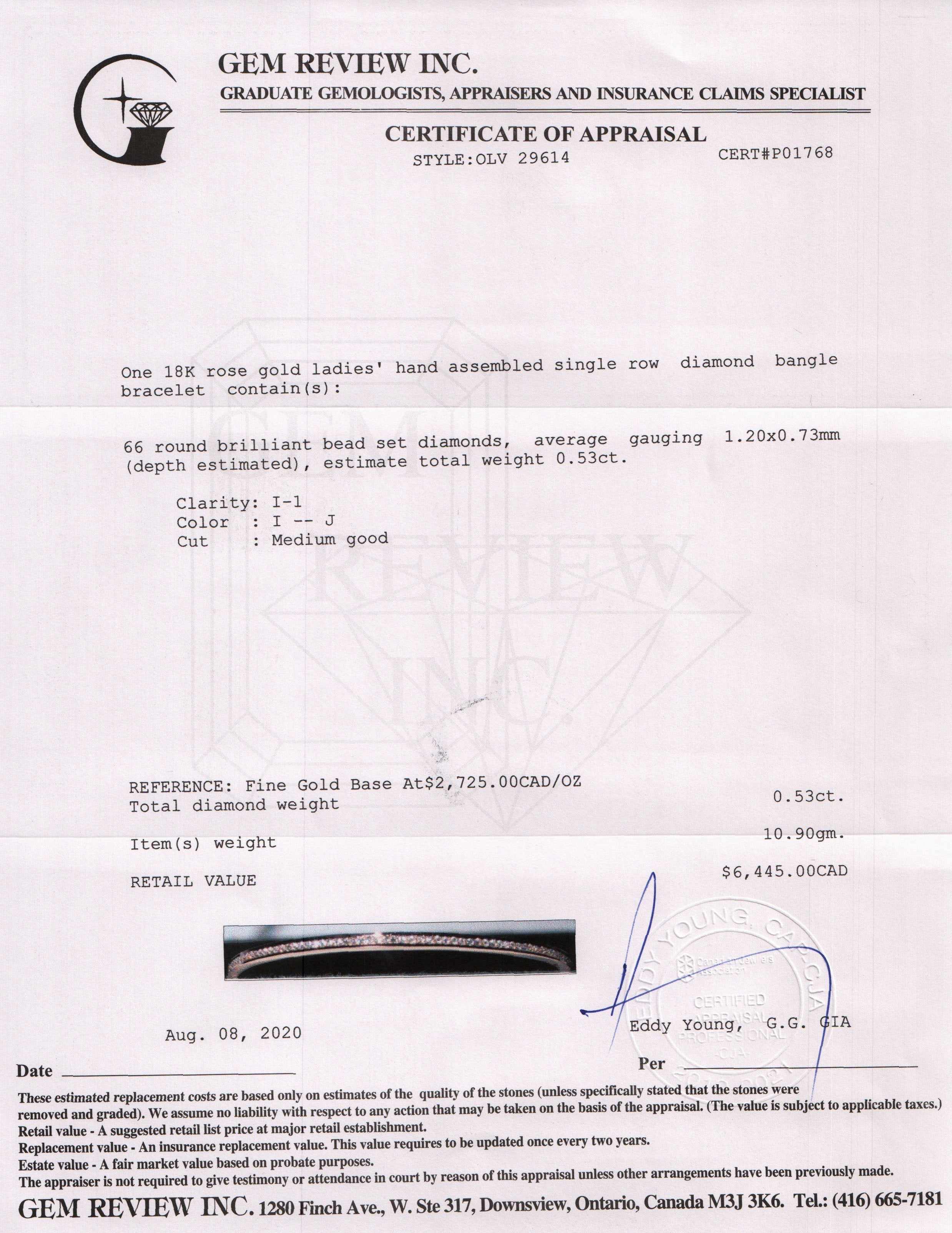 - 66 Round Brilliant Cut Diamonds Totalling Approximately 0.53 ct. of I1 Clarity, I-J Colour, Medium Good Cut