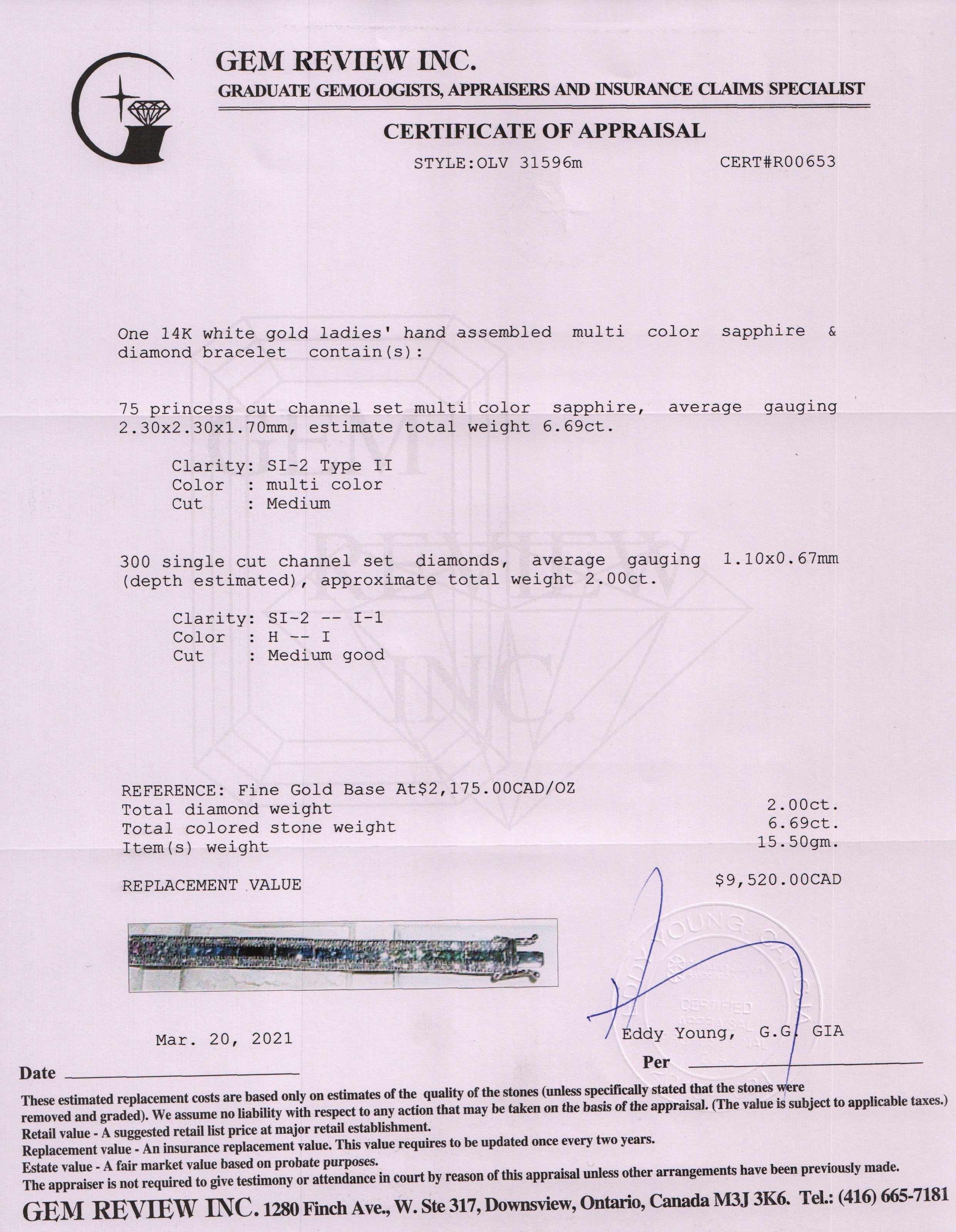 - 156 Princess Cut Multi-Color Sapphires Totalling Approximately 6.69 ct.