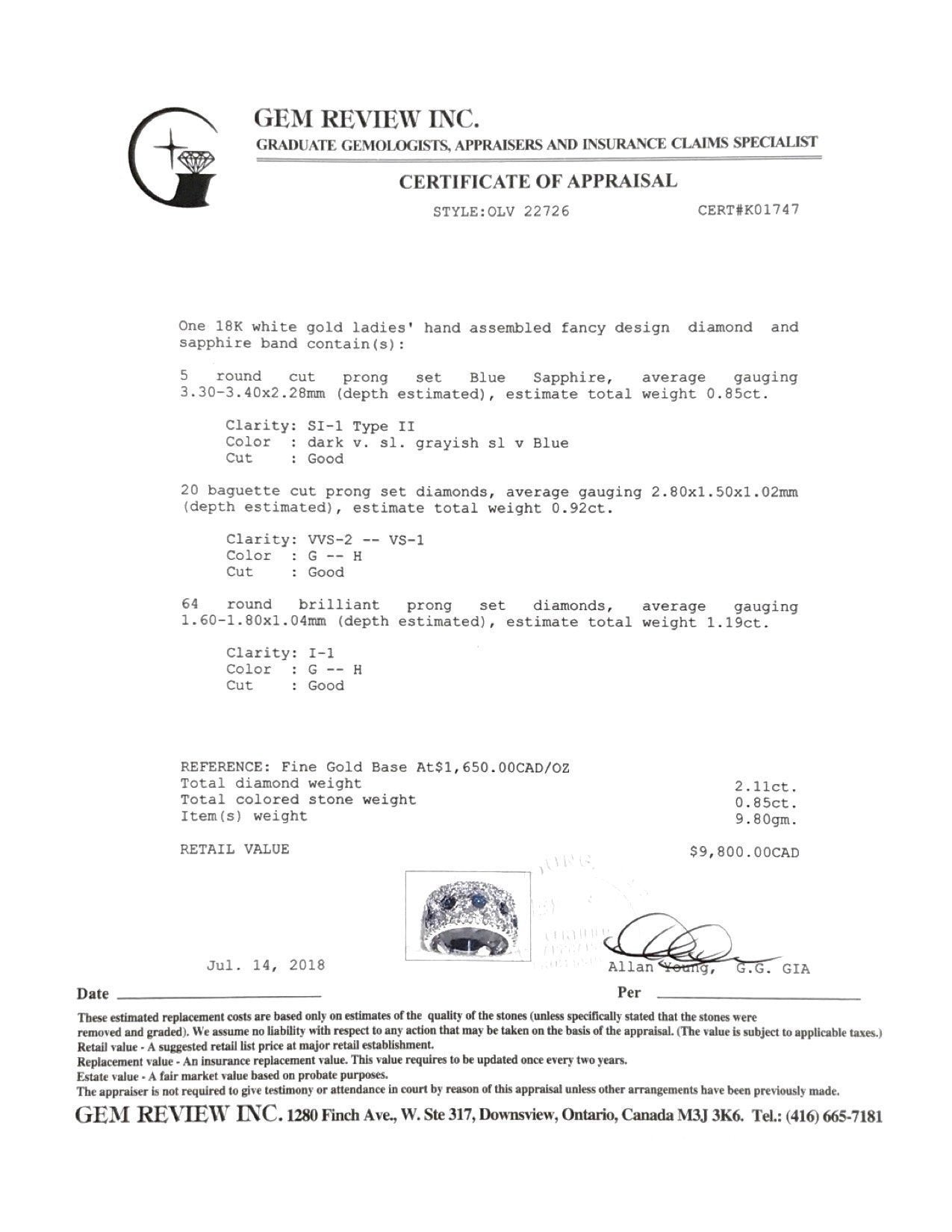 - 20 Baguette Cut Diamonds Totalling Approximately 0.92 ct. of VVS2-VS1 Clarity, G-H Colour, Good Cut