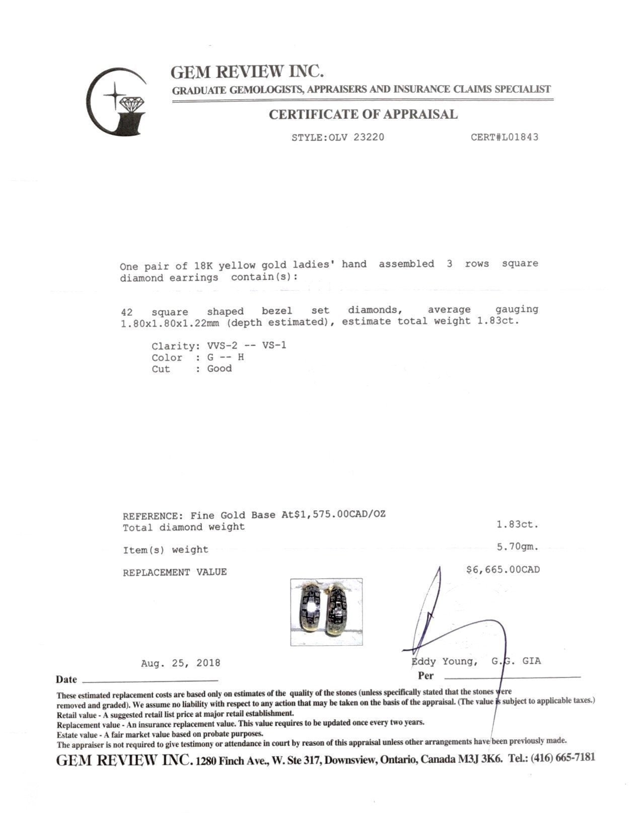 - 42 Square Shaped Bezel Set Diamonds Totalling Approximately 1.83 ct. of VVS2-VS1 Clarity, G-H Colour, Good Cut