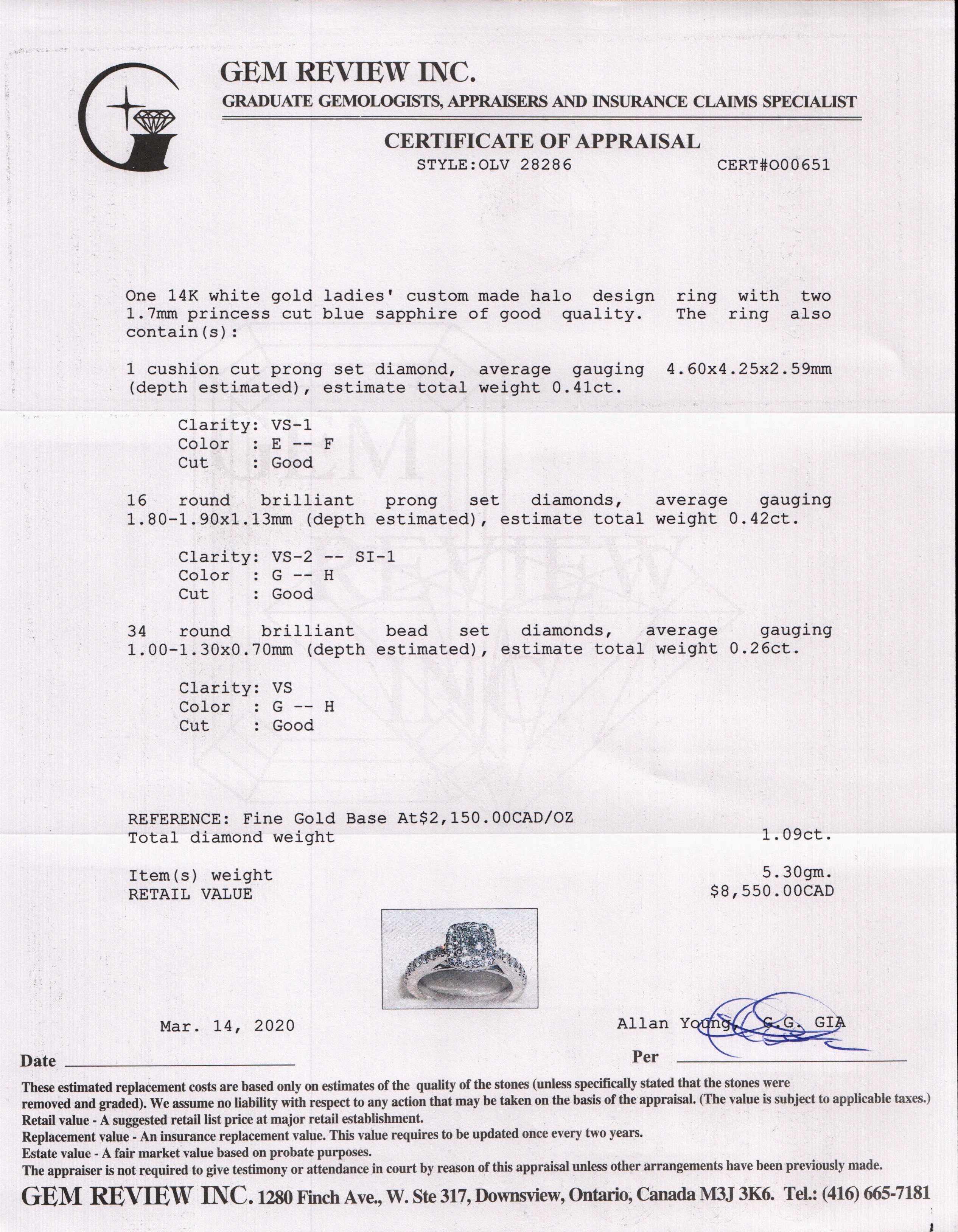 - 1 Cushion Cut Diamond Weighing Approximately 0.41 ct. of VS1 Clarity, E-F Colour, Good Cut