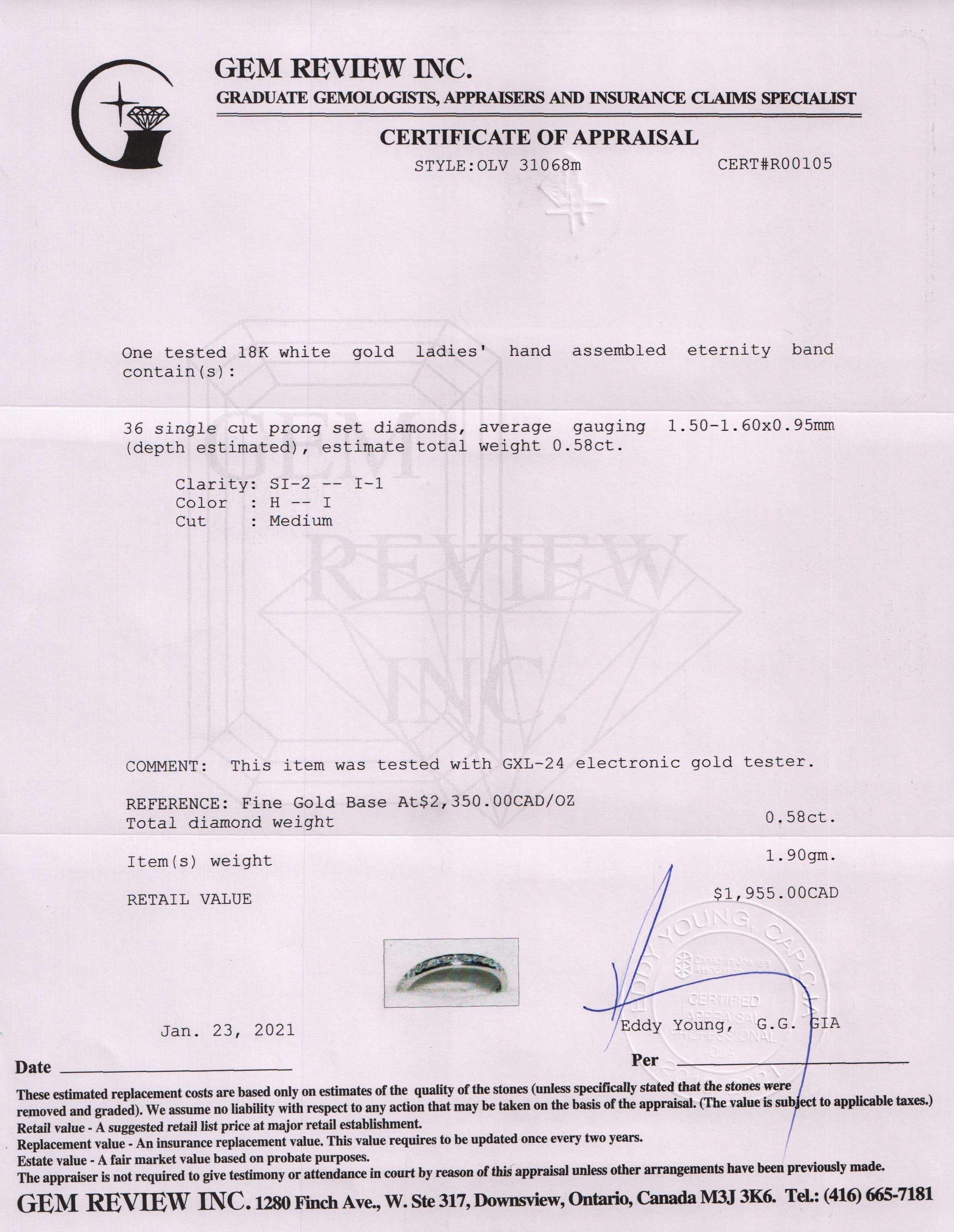 - 36 Single Cut Channel-Set Diamonds Totalling Approximately 0.58 ct. of SI2-I1 Clarity, H-I Colour, Medium Cut