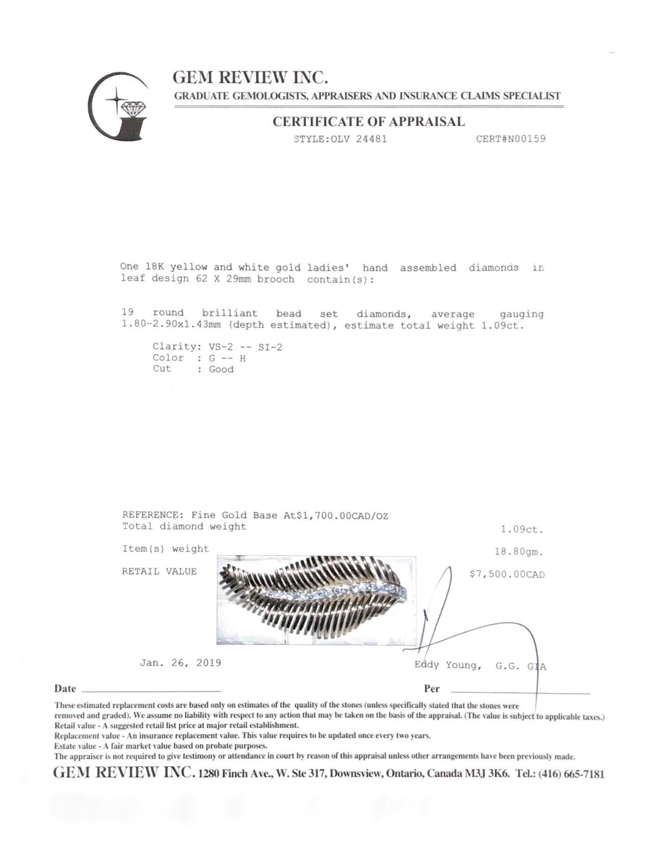 - 19 Round Brilliant Cut Diamonds Totalling Approximately 1.09 ct. of VS2-SI2 Clarity, G-H Colour, Good Cut