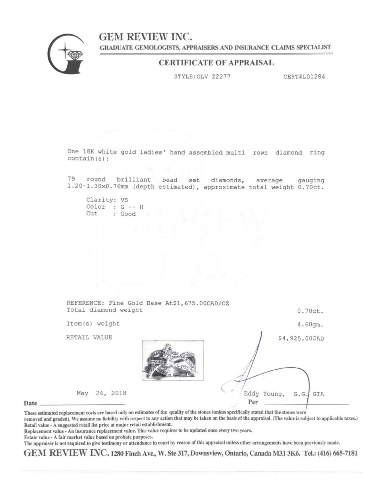 - 79 Round Brilliant Cut Diamonds Totalling Approximately 0.70 ct. of VS Clarity, G-H Colour, Good Cut