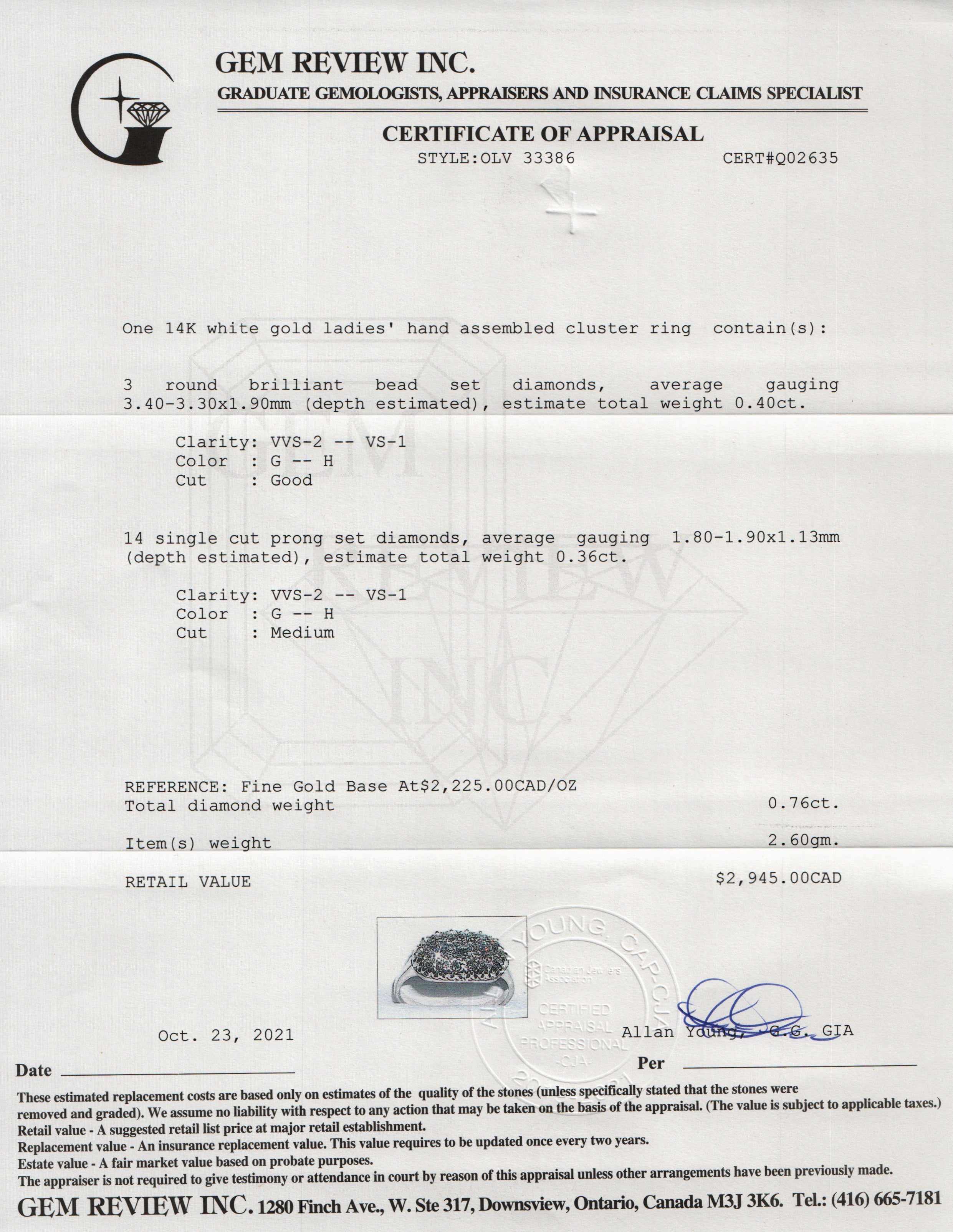 Included Items: Gem Review Appraisal