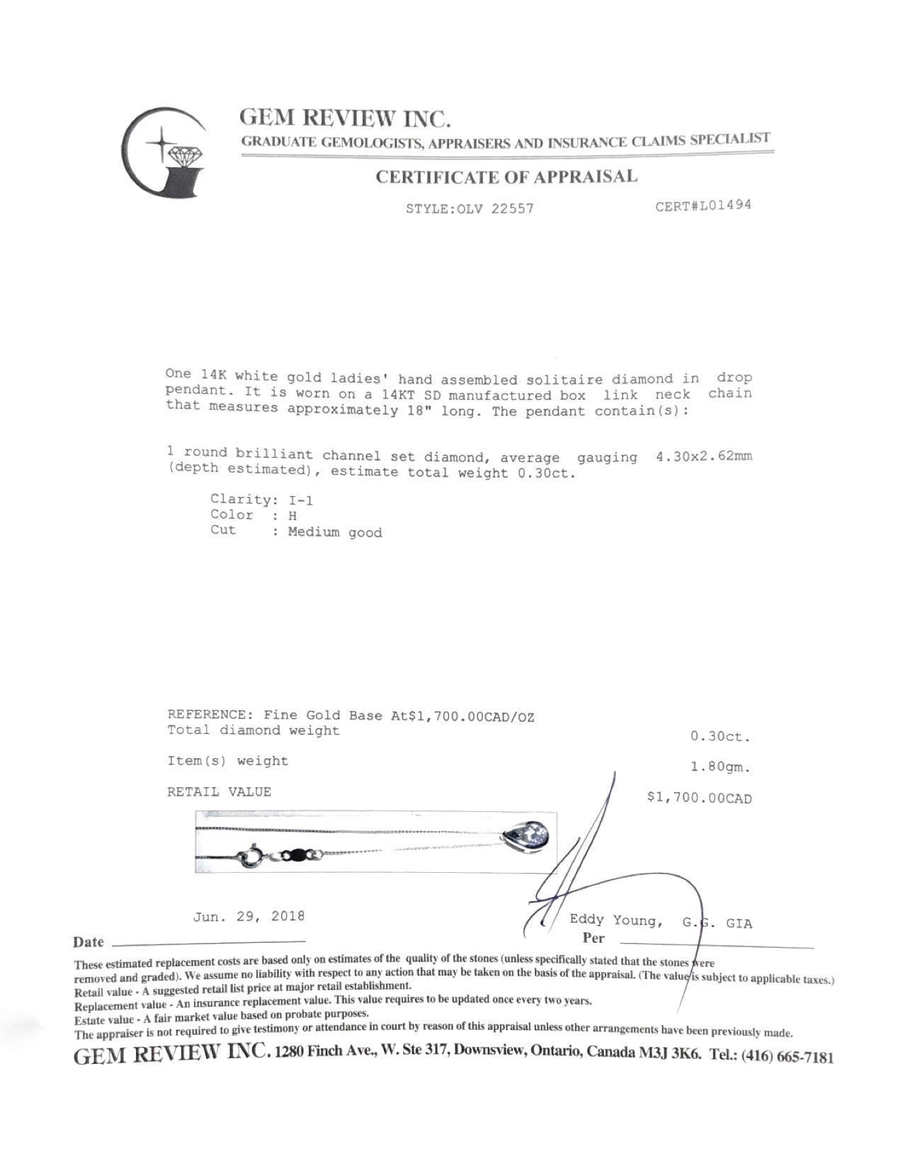 - 1 Round Brilliant Cut Diamond Weighing Approximately 0.30 ct. of I1 Clarity, H Colour, Medium-Good Cut