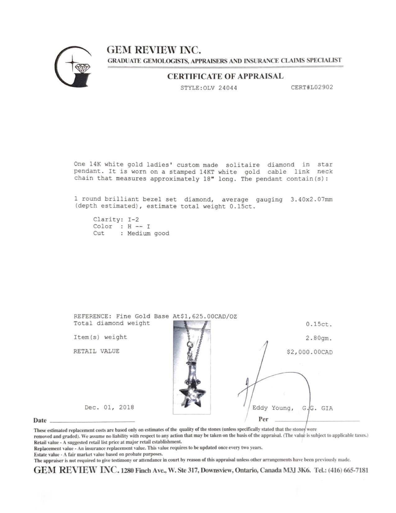 - 1 Round Brilliant Cut Diamond Weighing Approximately 0.15 ct. of I2 Clarity, H-I Colour, Medium Good Cut