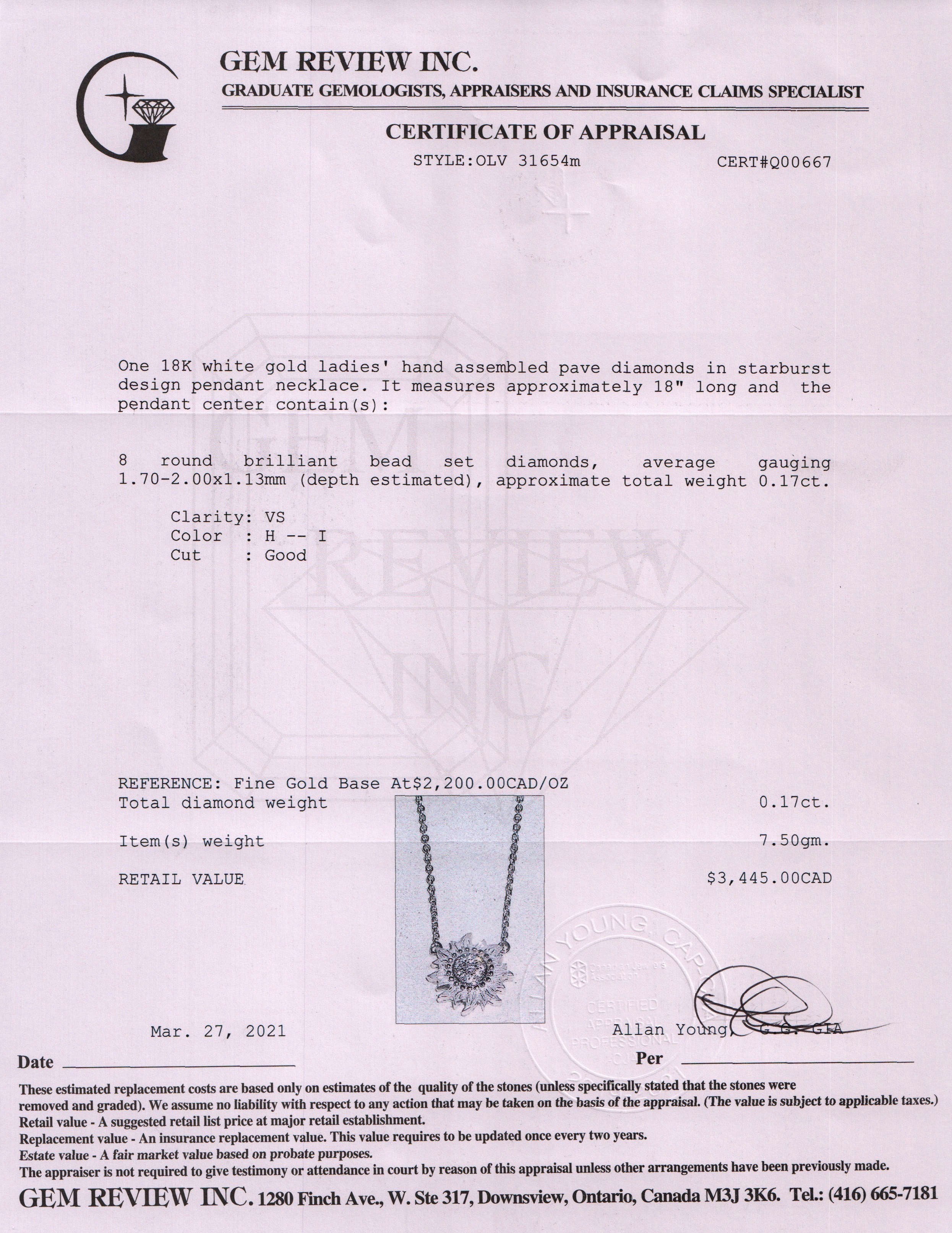 - 8 Round Brilliant Cut Diamonds Totalling Approximately 0.17 ct. of VS Clarity, H-I Colour, Good Cut