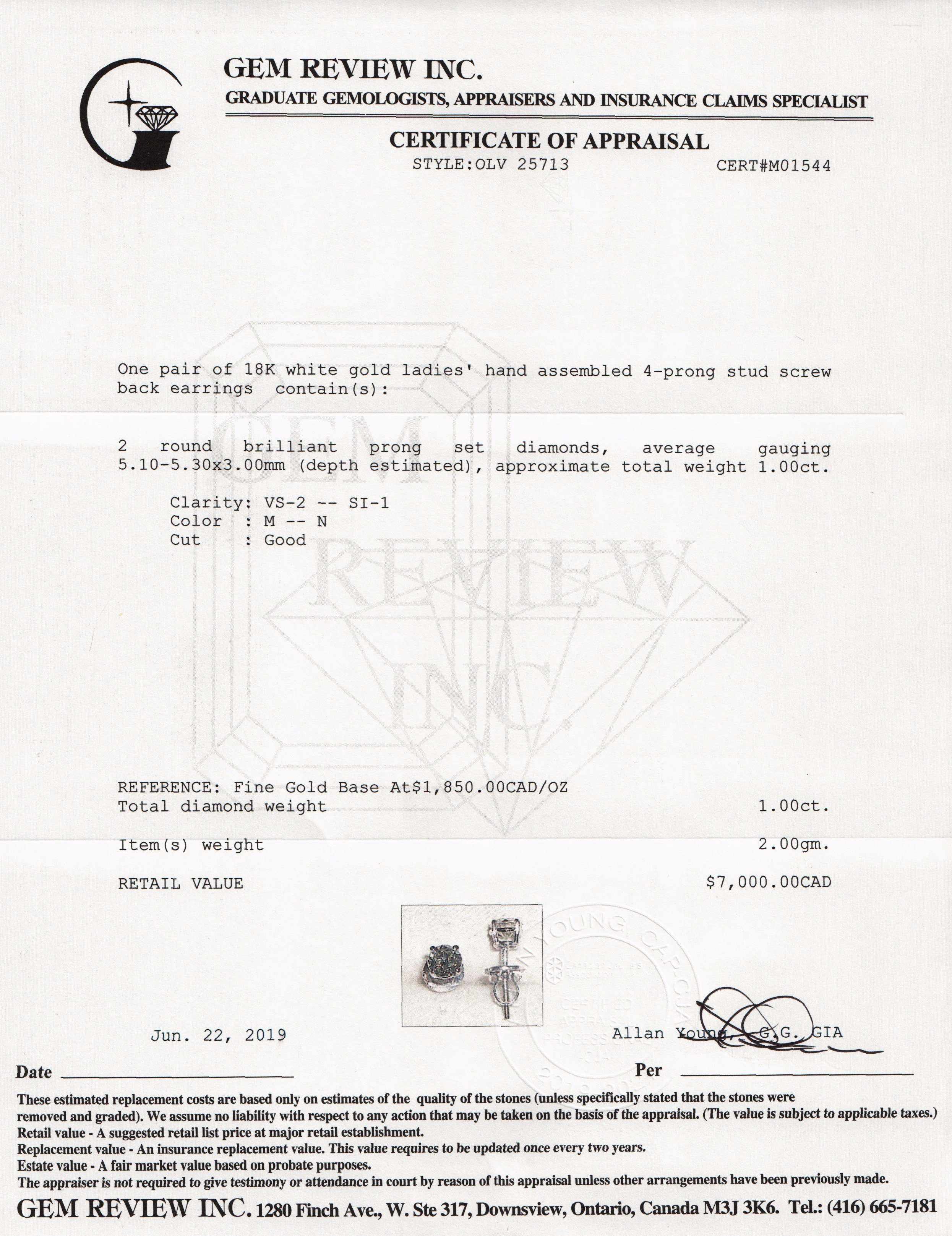 - 2 Round Brilliant Cut Diamonds Totalling Approximately 1.00 ct. of VS2-SI1 Clarity, M-N Colour, Good Cut