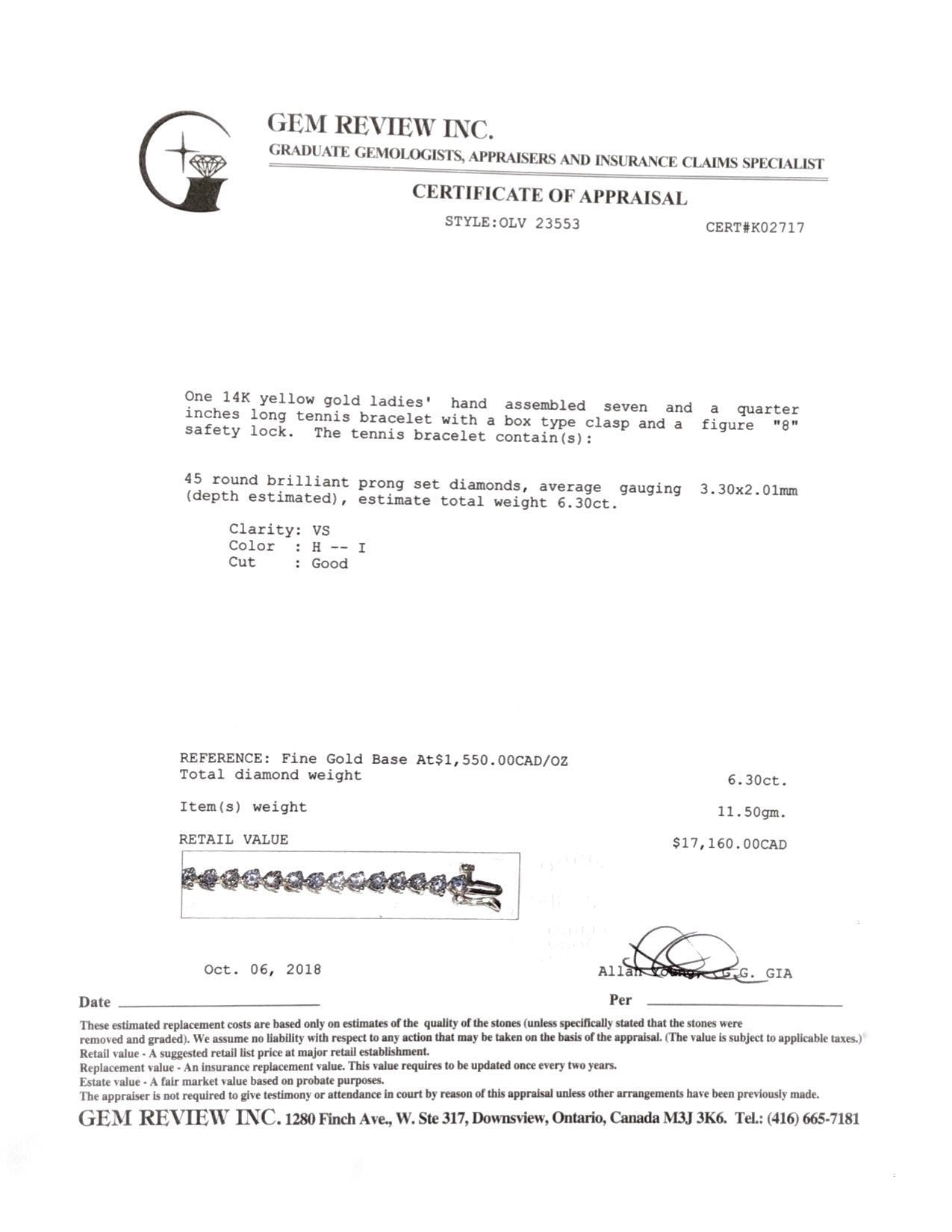 - 45 Round Brilliant Cut Diamonds Totalling Approximately 6.30 ct. of VS Clarity, H-I Colour, Good Cut