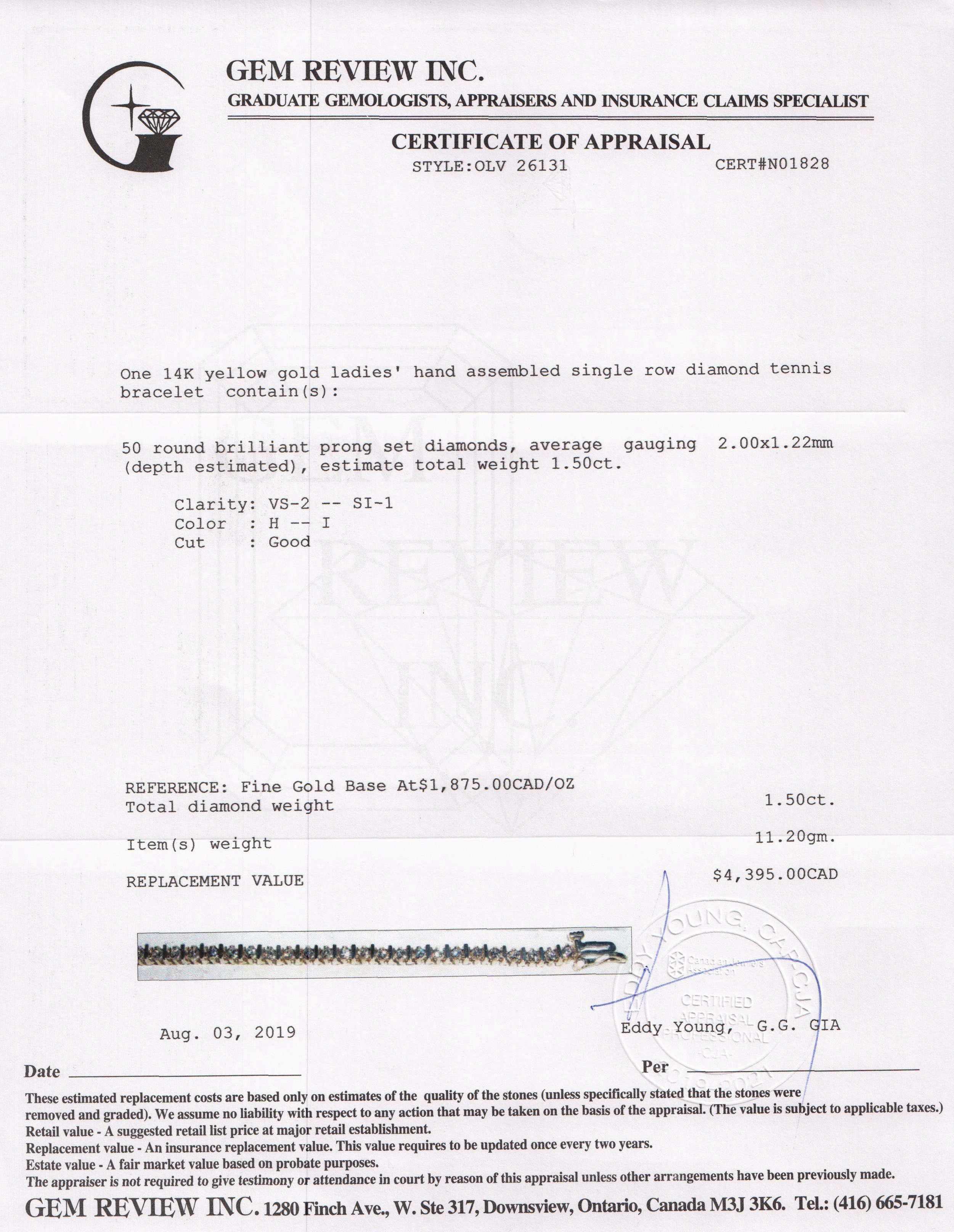 - 50 Round Brilliant Cut Diamonds Totalling Approximately 1.50 ct. of VS2-SI1 Clarity, H-I Colour, Good Cut