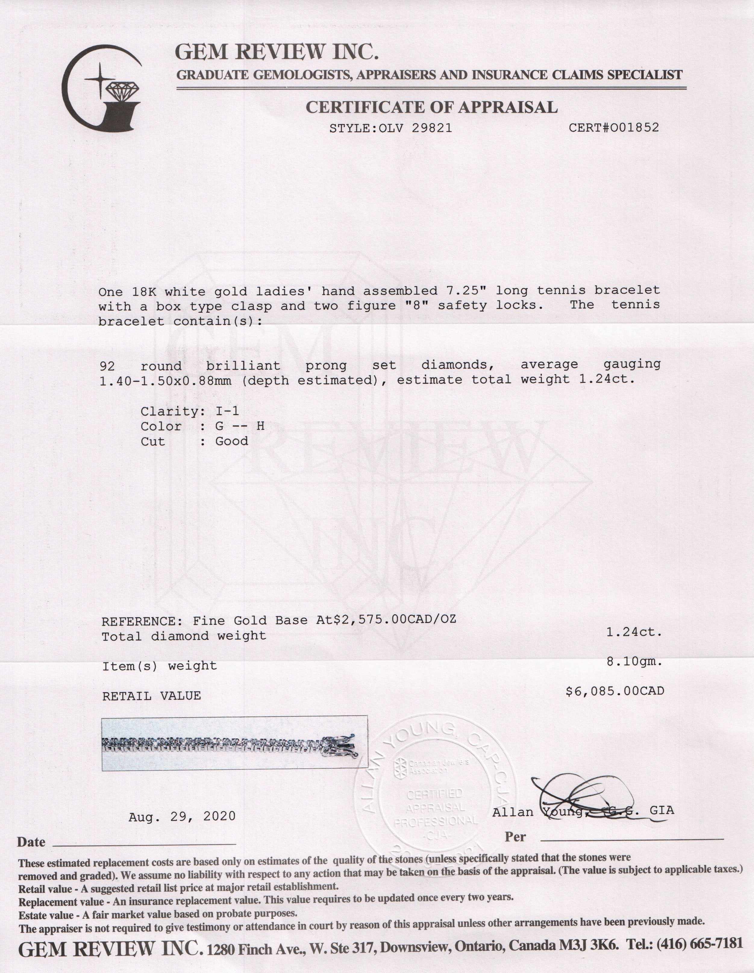 - 92 Round Brilliant Cut Diamonds Totalling Approximately 1.24 ct. of I1 Clarity, G-H Colour, Good Cut