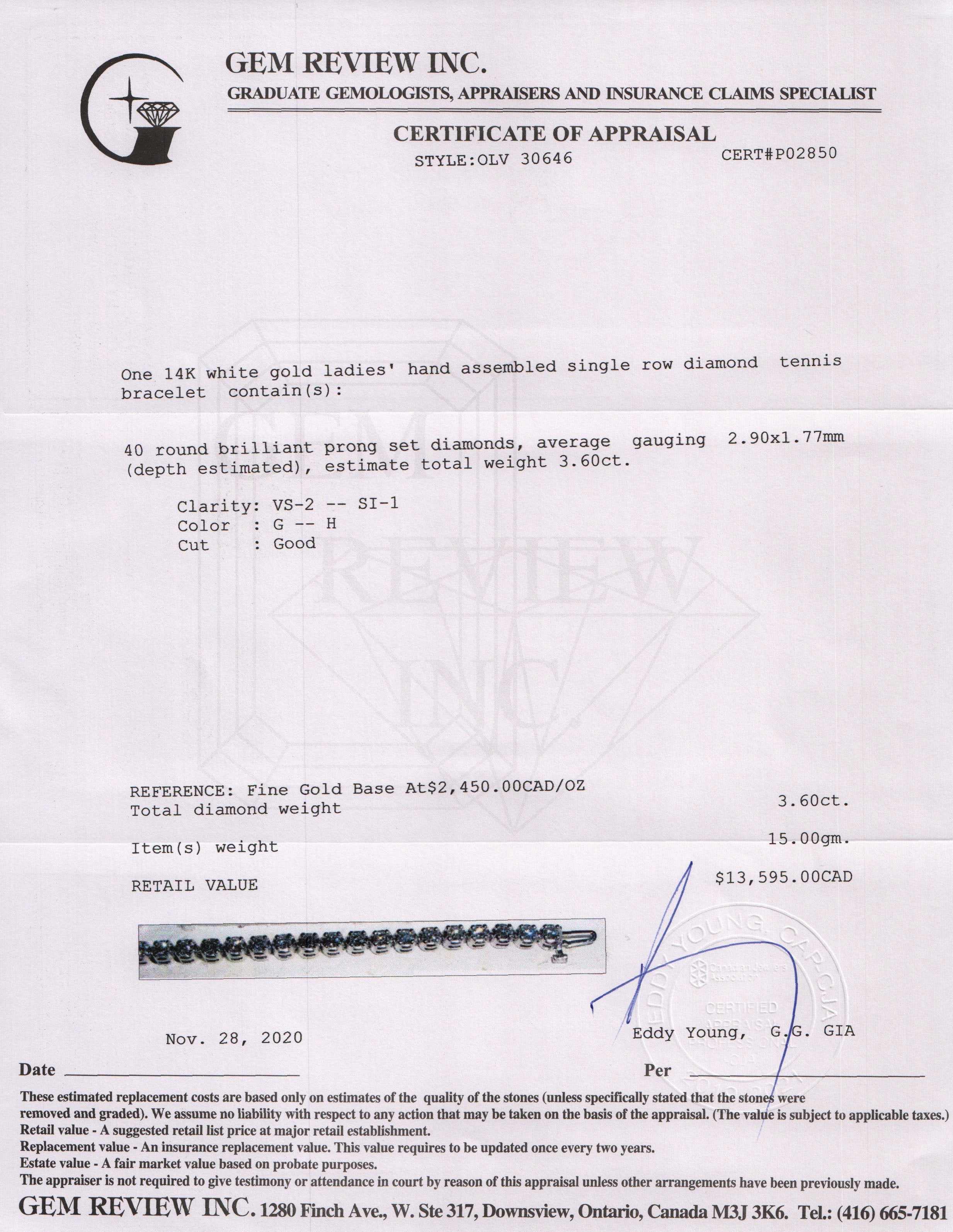 - 40 Round Brilliant Cut Diamonds Totalling Approximately 3.60 ct. of VS2-SI1 Clarity, G-H Colour, Good Cut