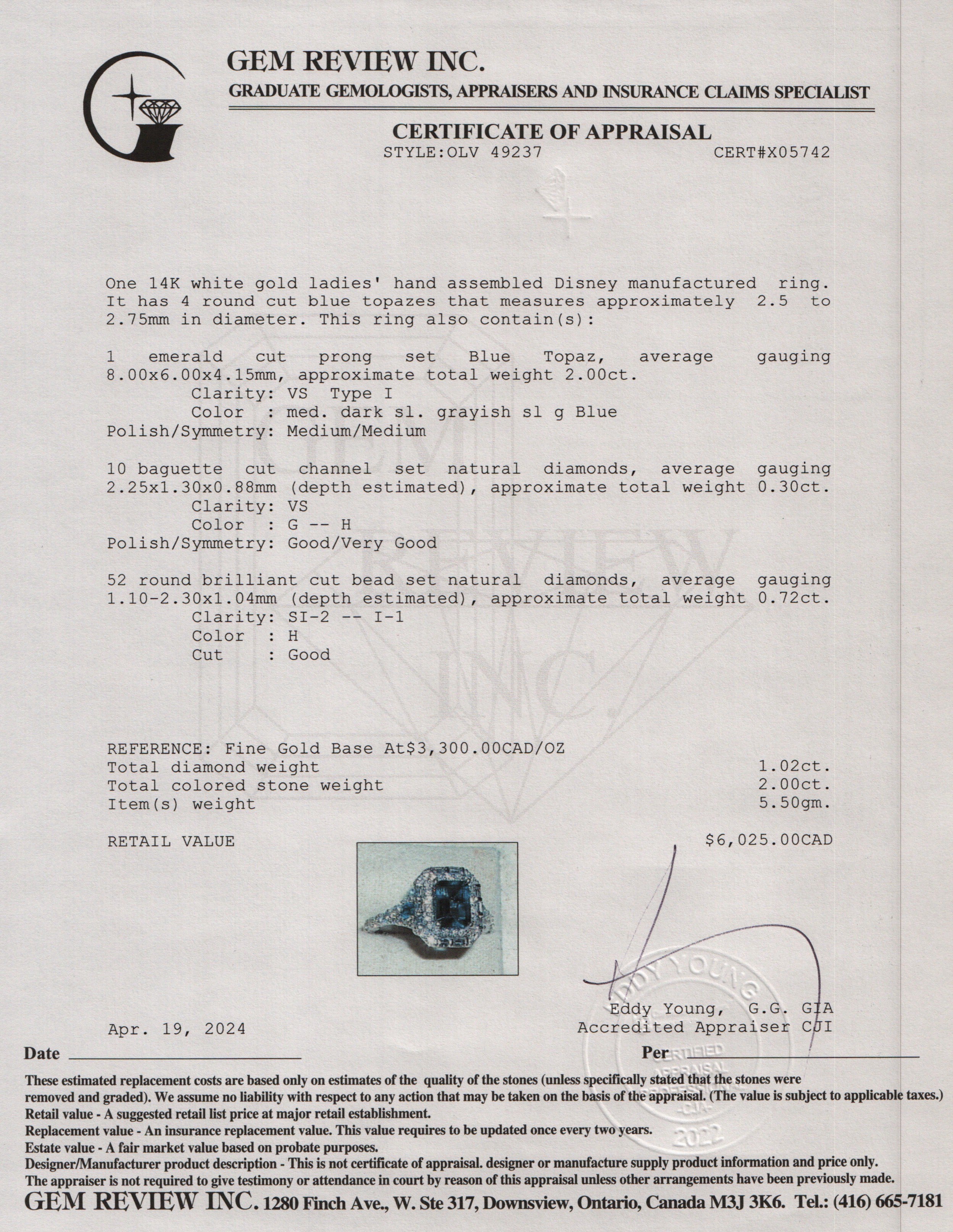 Disney 14k White Gold Blue Topaz & Diamond Ring, Size 7.75