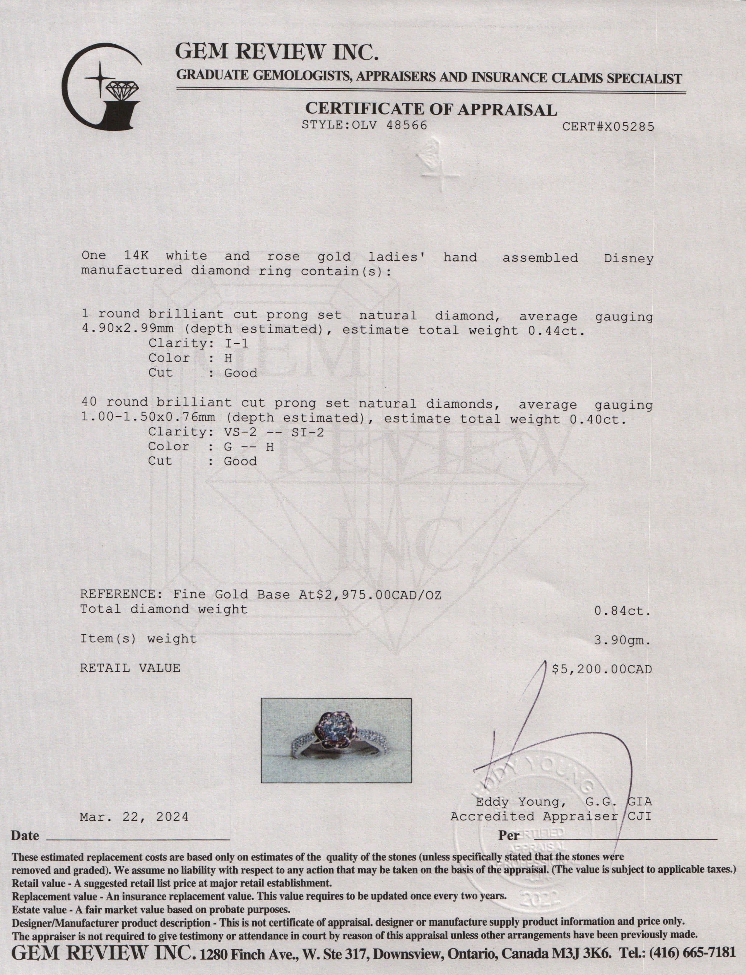 Disney 14k White & Rose Gold Diamond Ring, Size 5.25