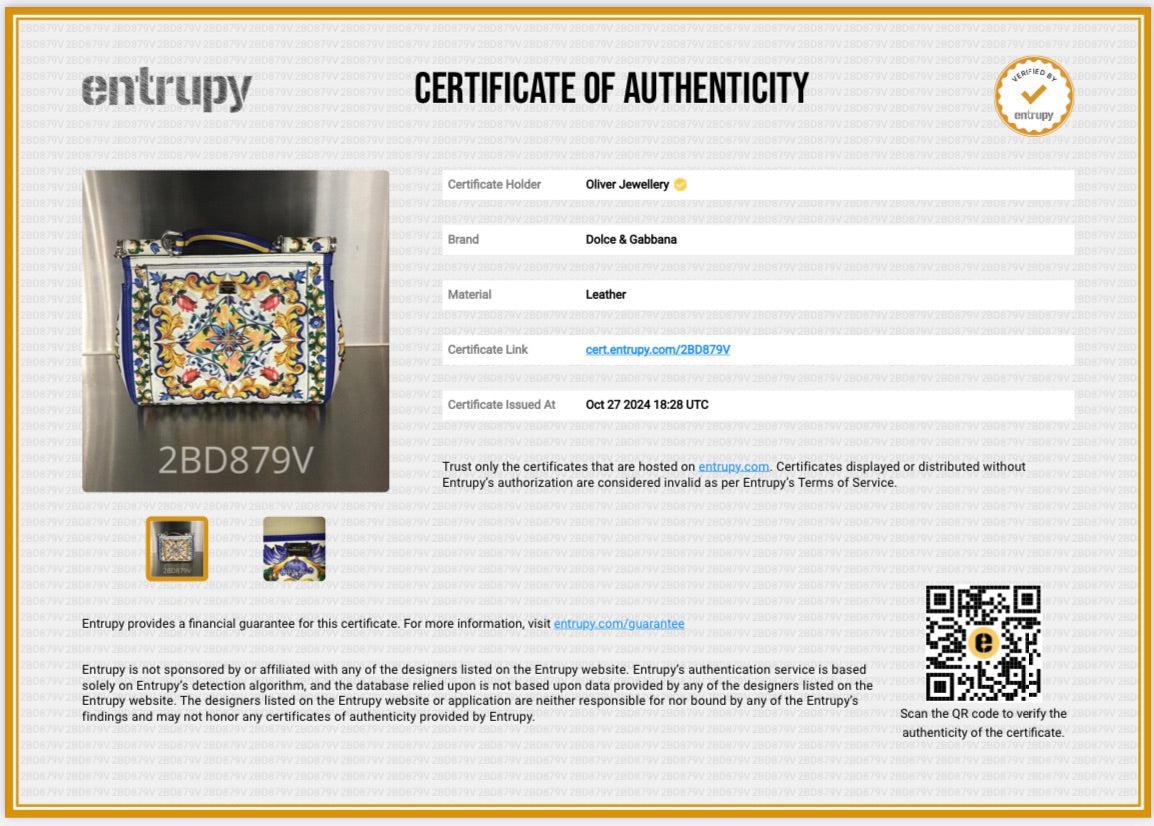 Dolce & Gabbana White Majolica Print Leather Medium Miss Sicily Bag w/ Strap