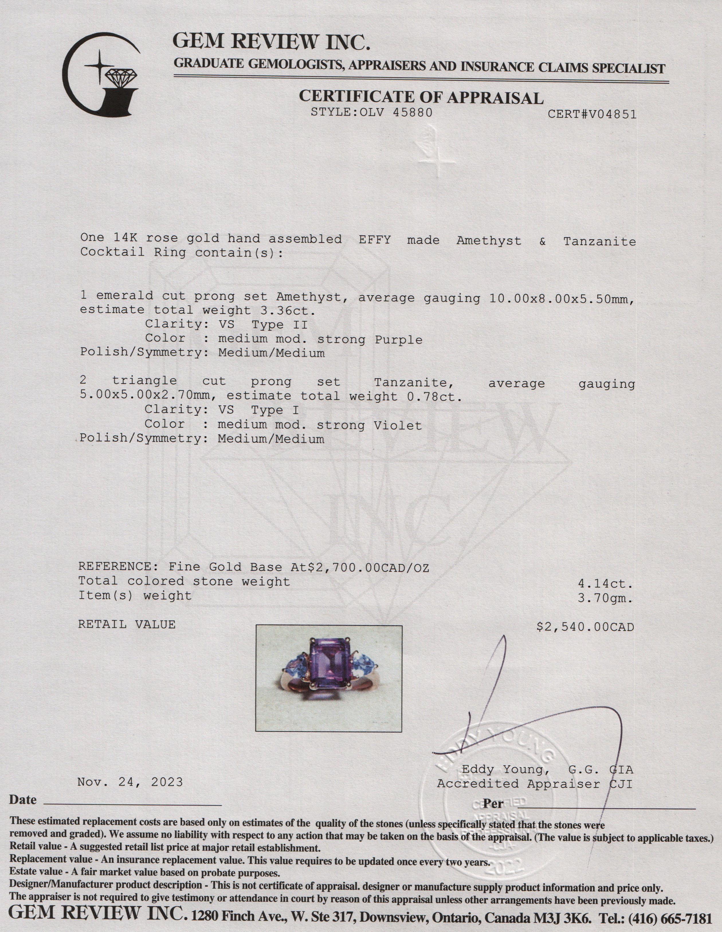 Effy 14k Rose Gold Amethyst & Tanzanite Cocktail Ring, Size 7